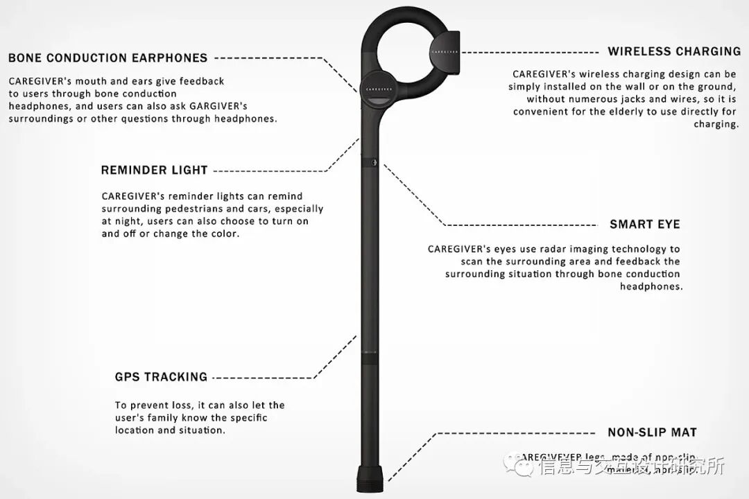 Caregiver 旨在帮助增强老年用户的听力、视力和情境意识,是一种智能手杖,它让老年人的生活变得无限美好。