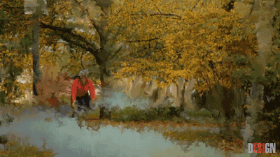 公园中骑自行车的人渐渐融化