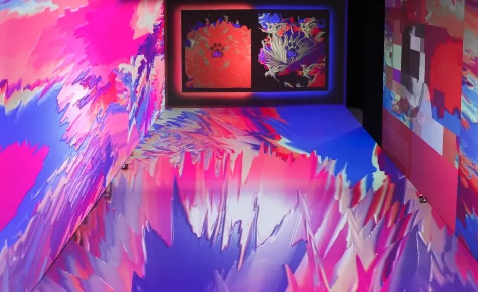 在这里,参与者可与屏幕进行画面互动,挥动手臂,开启Duffy大门,即将探索一场创造性的艺术之路。整个空间被泼墨式的彩色填满,从脚下到四周到天花板,720度沉浸式包裹,都记录着观众走过的痕迹,随动作大小、快慢变化以及触摸感应而变化。