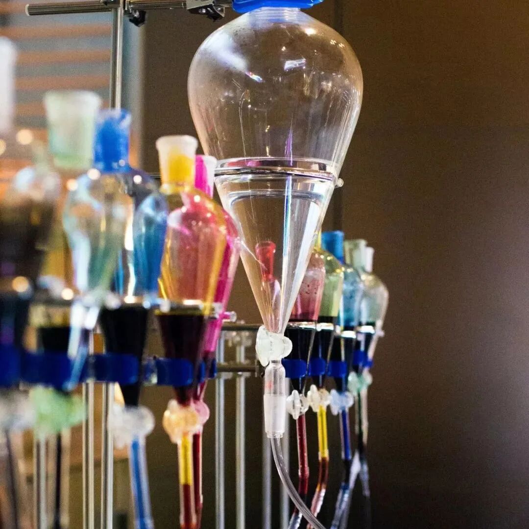 艺术家将不同浓度、不同颜色的颜料放置于装置瓶中,并利用电脑编程,来控制装置的运行。在这个作品中,艺术家利用了两个自然现象:粘滞指进(Viscous Fingering)和马兰戈尼效应(Marangoni effect)。