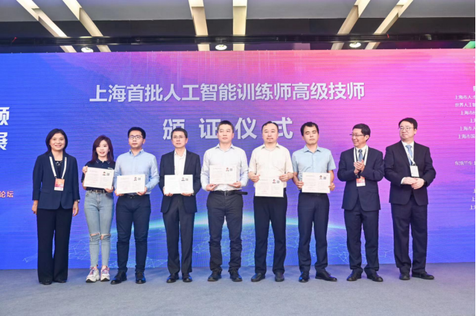 相关领导为上海首批人工智能训练师高级技师代表颁证