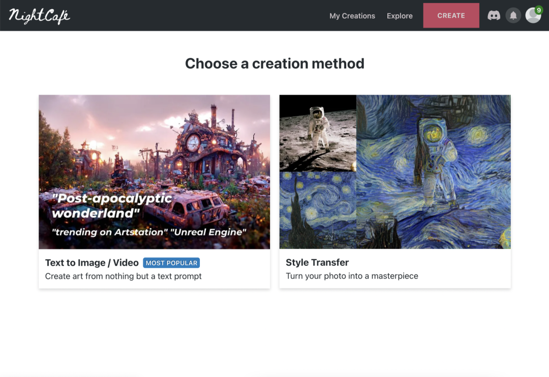目前最热门的入门级的AI绘画应用是dream,这个APP很好入门也是免费的,只是生成的图像功能相对简单,而且像素偏低。除了这个还有nightcafe也是做的比较早,网站形式功能比dream强大很多,不过需要付费。