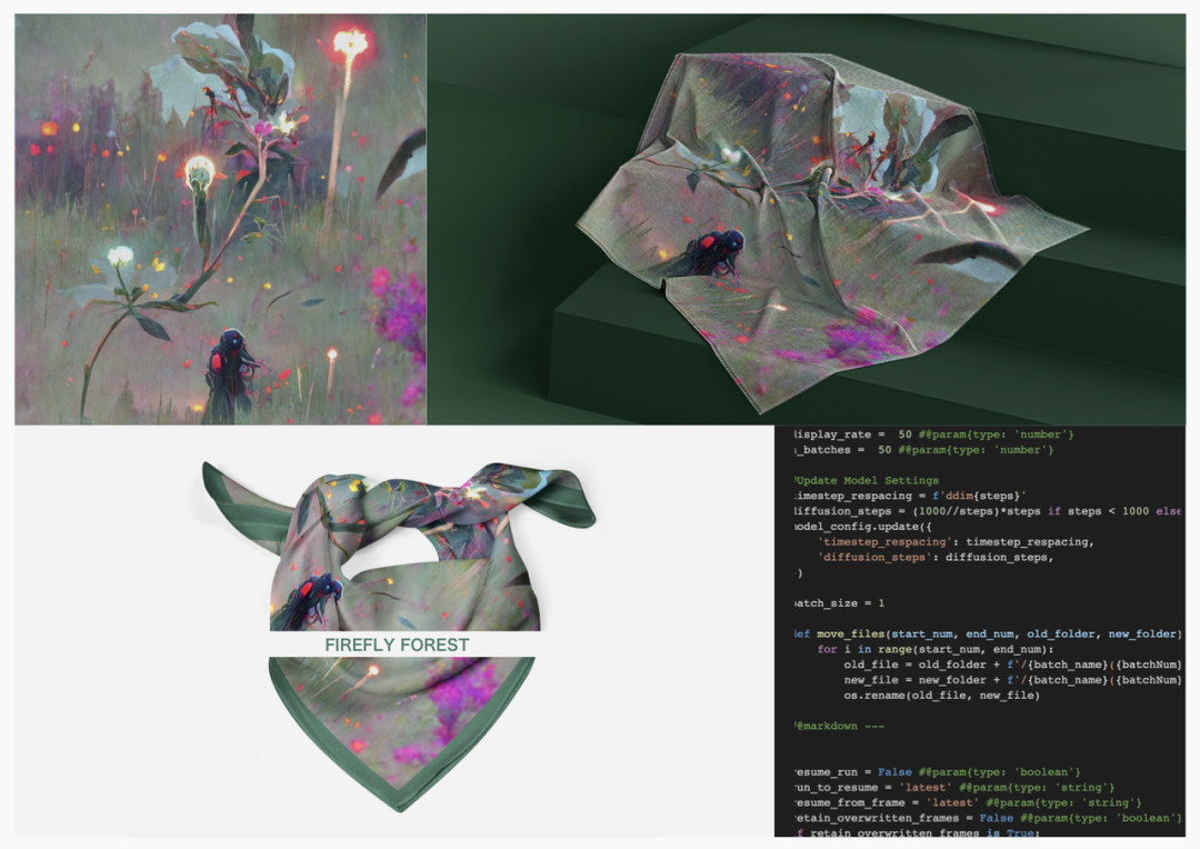 而我自己也尝试过用AI生成的图来制作系列丝巾。还有更多的融合和尝试等着我们去发现。