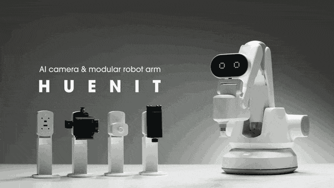 HUENIT是一款人工智能相机和模块化机械臂,可以成为你日常生活中的助手。它支持屏幕和摄像头,可以识别物体、人以及他们的声音。它还有一个模块化的附件系统,可以让你连接HUENIT的不同模块,从而让这个机器人手臂执行诸如拾起物体、绘制草图、3D打印和激光雕刻等活动。