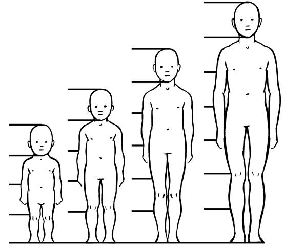 1岁四个头,3岁五个头,5岁六个头,10岁7个头