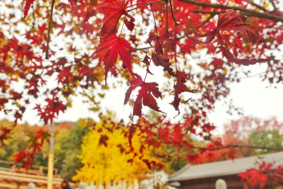 白墙黑瓦,层层叠叠,错落有致,与艳丽的塔川秋景相互交融,不聒不噪,美得刚刚好。