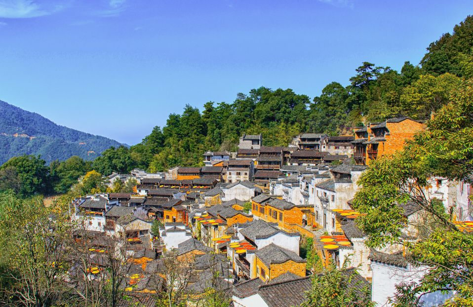 这是一座徽派小村,因古民居依山而建,层层叠叠形如宝塔,又有溪流穿村而过而得名。