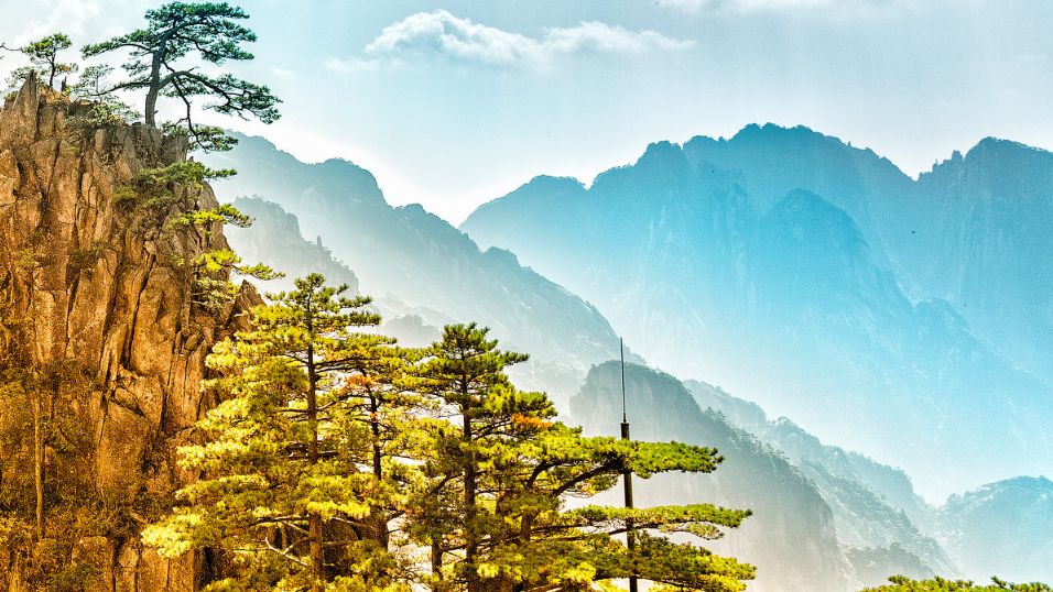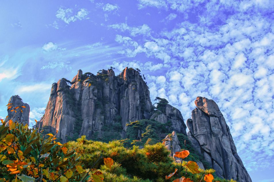 秋天,黄山处处流淌着温暖的颜色,“金阳红树间疏黄”的秋色在峡谷间律动,追逐嬉戏,相映成趣。