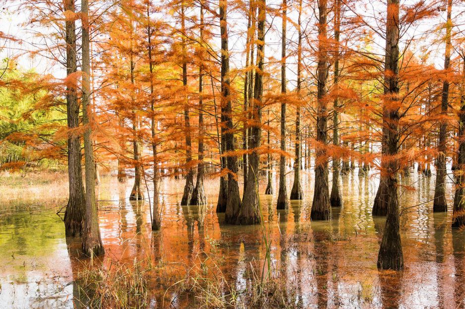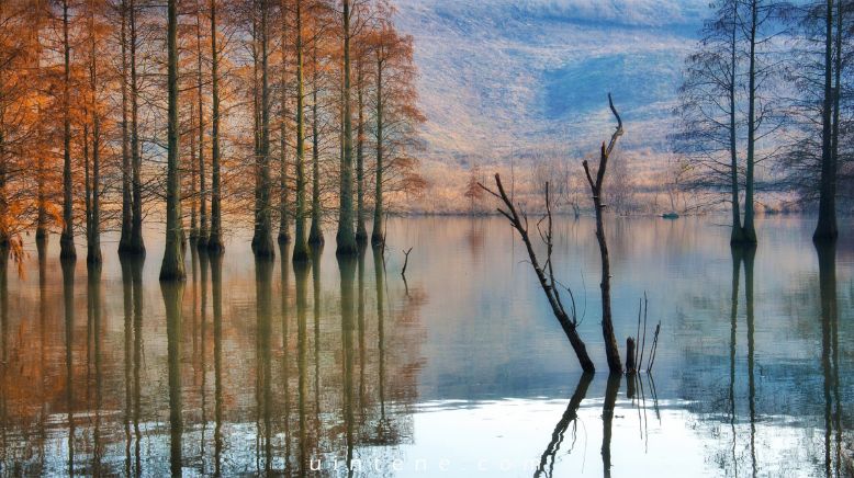 茂密的水杉高大挺拔,蓝天白云映照的湖面,此时的止马岭像仙境一般,飘渺、神秘。