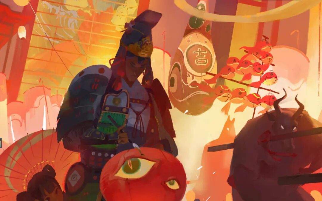 涂弥:今年尝试画了怪物和多人的大型插画,收获就是发现自己更多的短板,需要好好学习。最具挑战的一张图是《幽都——嫁》,因为这也是第一次尝试画群像,虽然很菜,但是接下来还是会继续尝试。