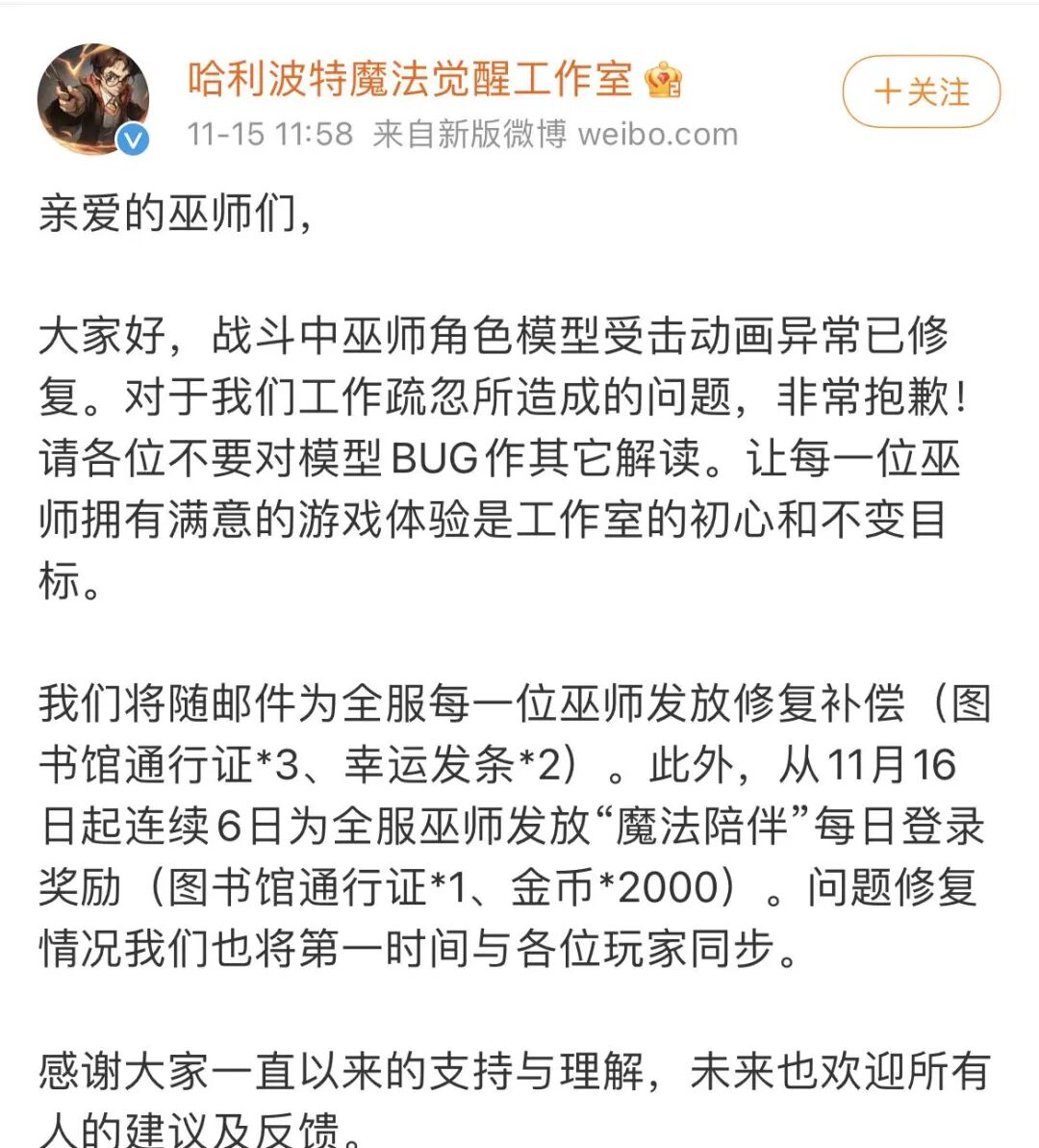 11月15日,有网易手游《哈利波特:魔法觉醒》玩家爆料称,《哈利波特:魔法觉醒》中存在侮辱女性玩家行为,“男女性角色击中表情不一致,女性角色被击中后存在吐舌头等性暗示行为,男性角色则表情正常。”