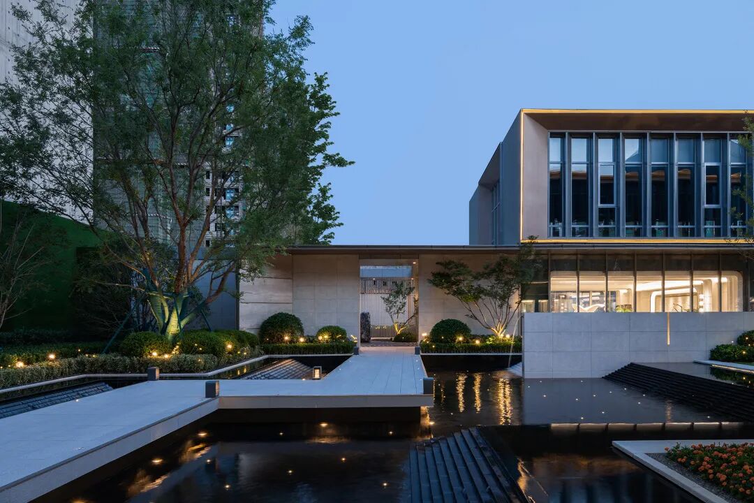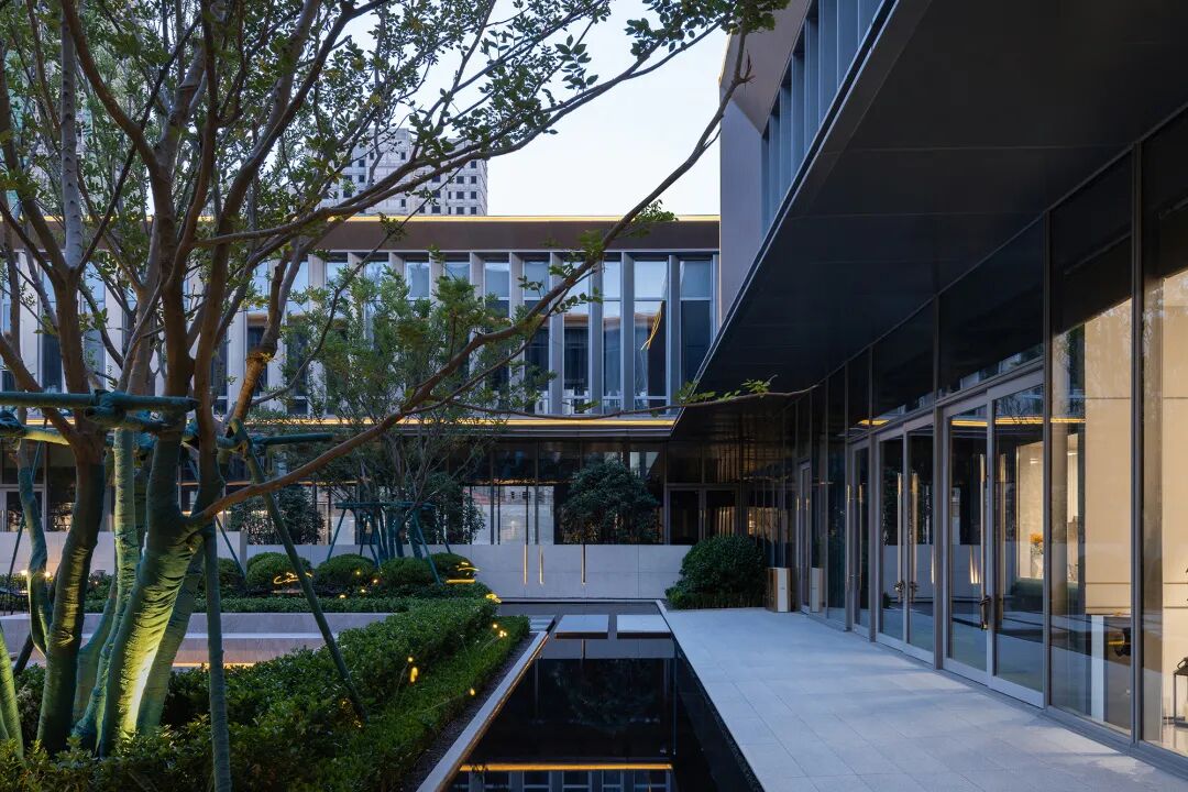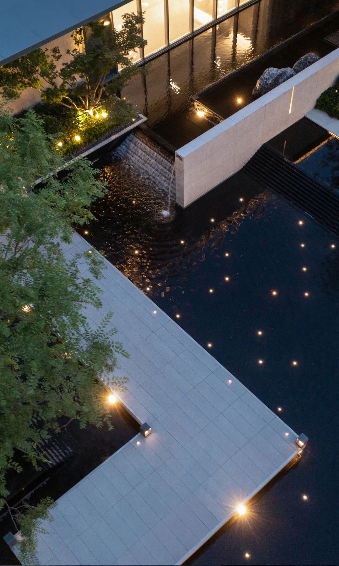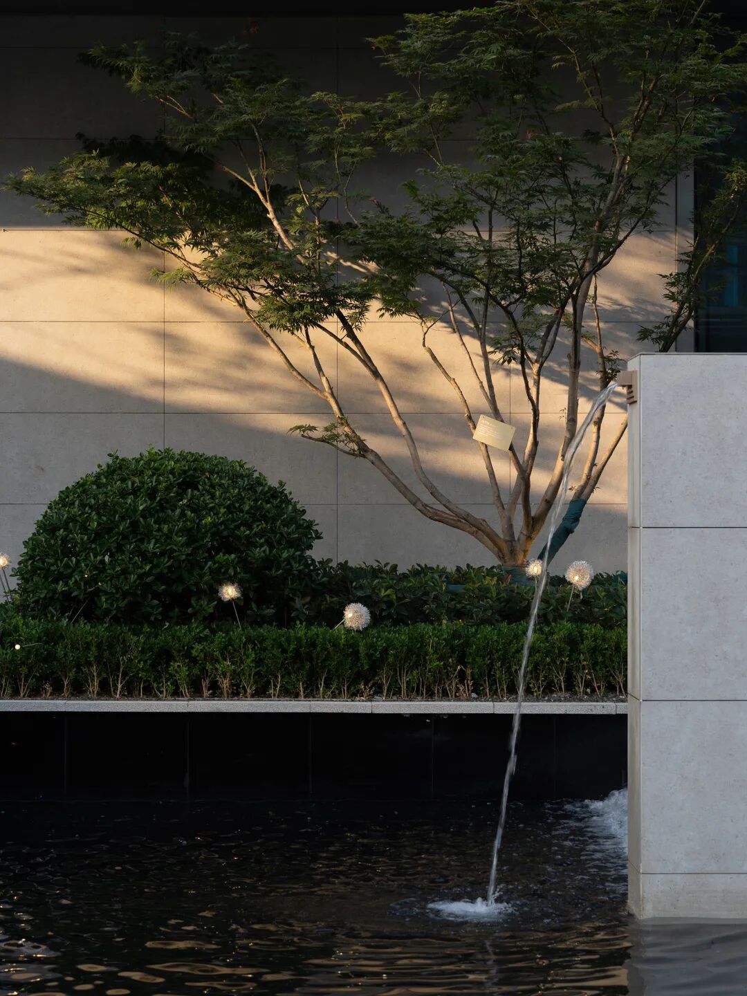 城市是自然、景观、建筑的融合,光、水、树等一切自然元素都是城市最好的装饰品,它们之间的相互融合,创造了空间鳞次栉比的纵向层次。转过回廊,我们将自然、景观、建筑相结合,利用空间的结构关系,营造移步异景,浮光掠影的序列与灵动。