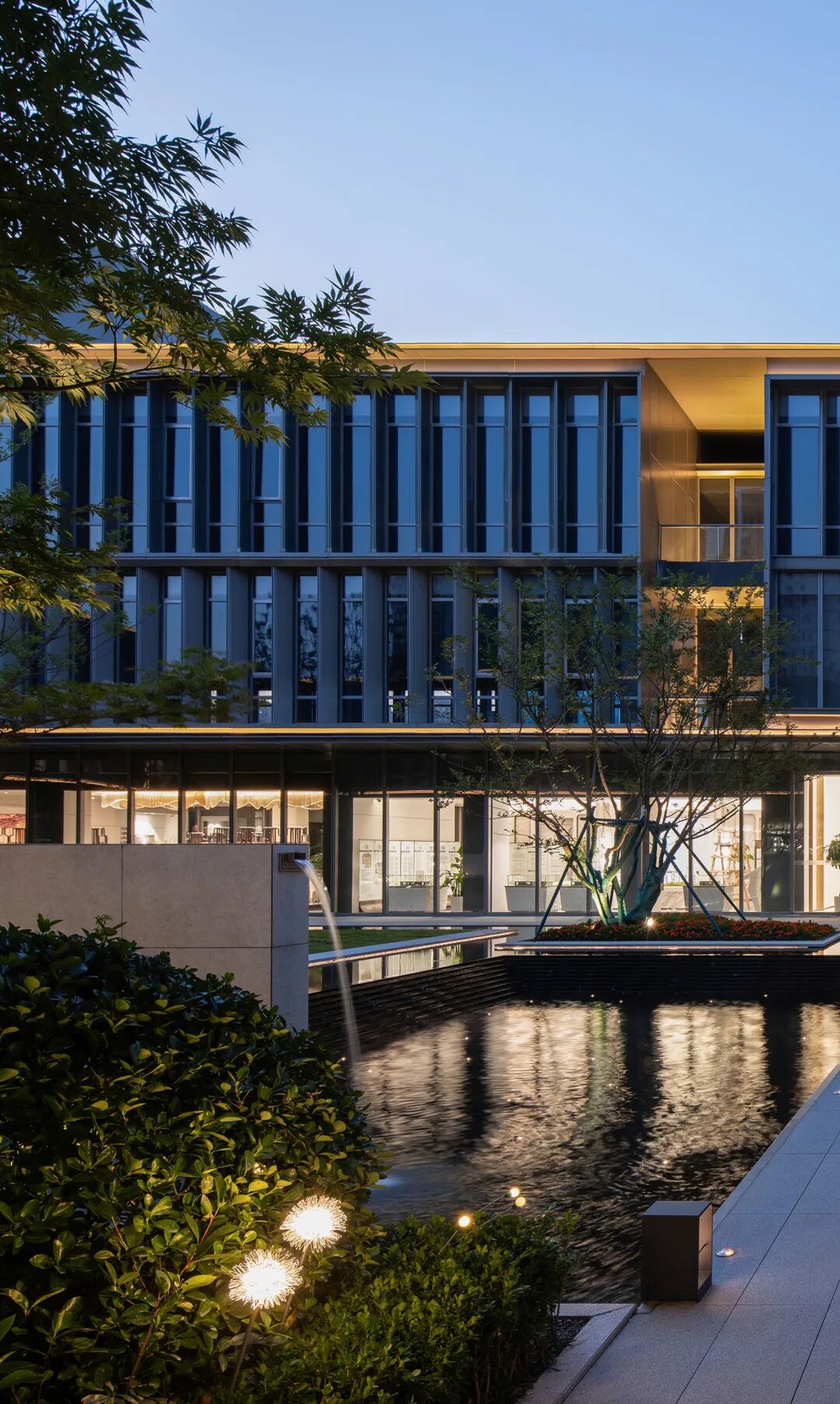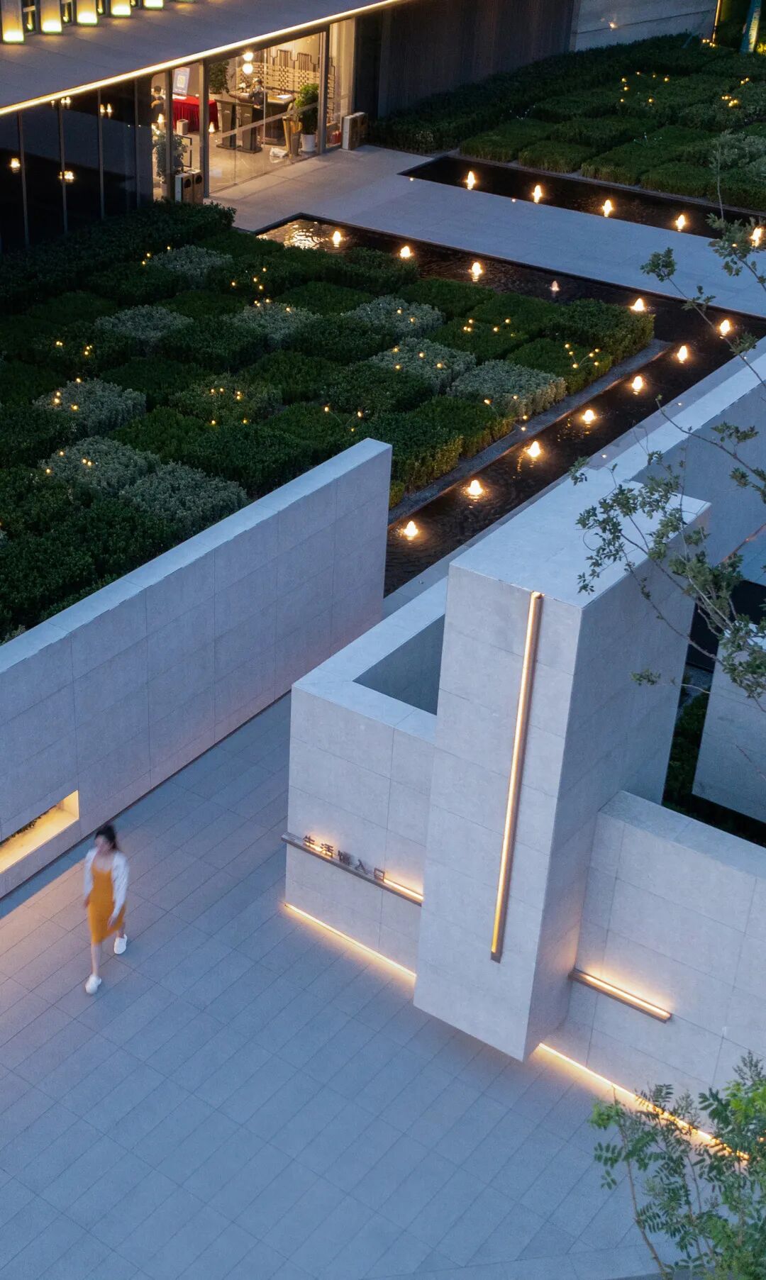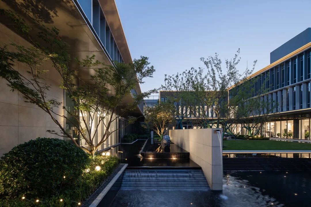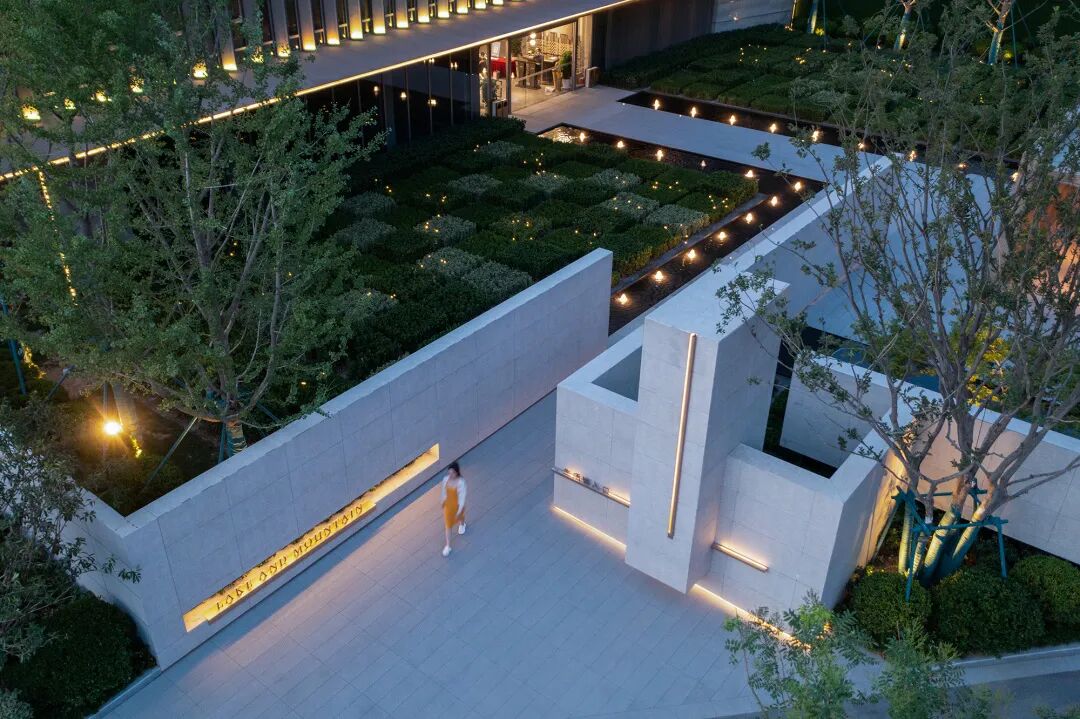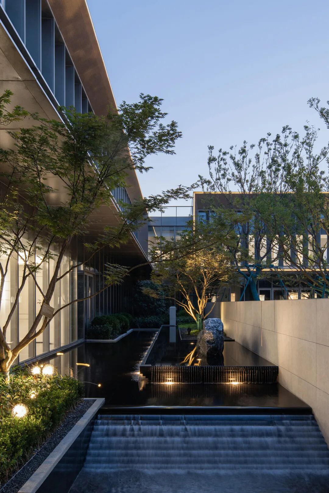 城市是自然、景观、建筑的融合,光、水、树等一切自然元素都是城市最好的装饰品,它们之间的相互融合,创造了空间鳞次栉比的纵向层次。转过回廊,我们将自然、景观、建筑相结合,利用空间的结构关系,营造移步异景,浮光掠影的序列与灵动。