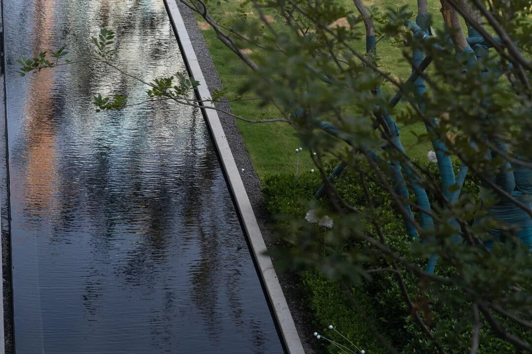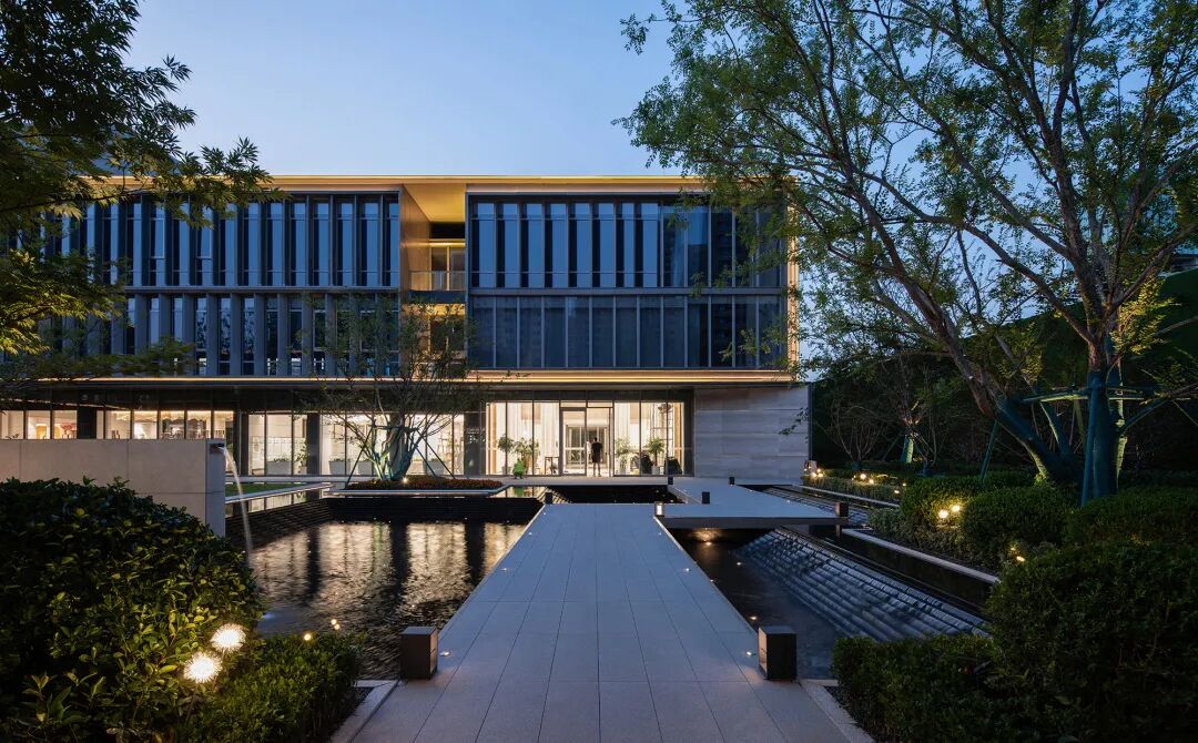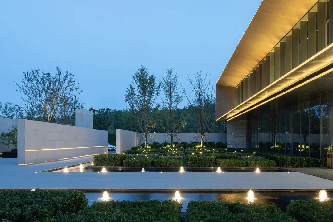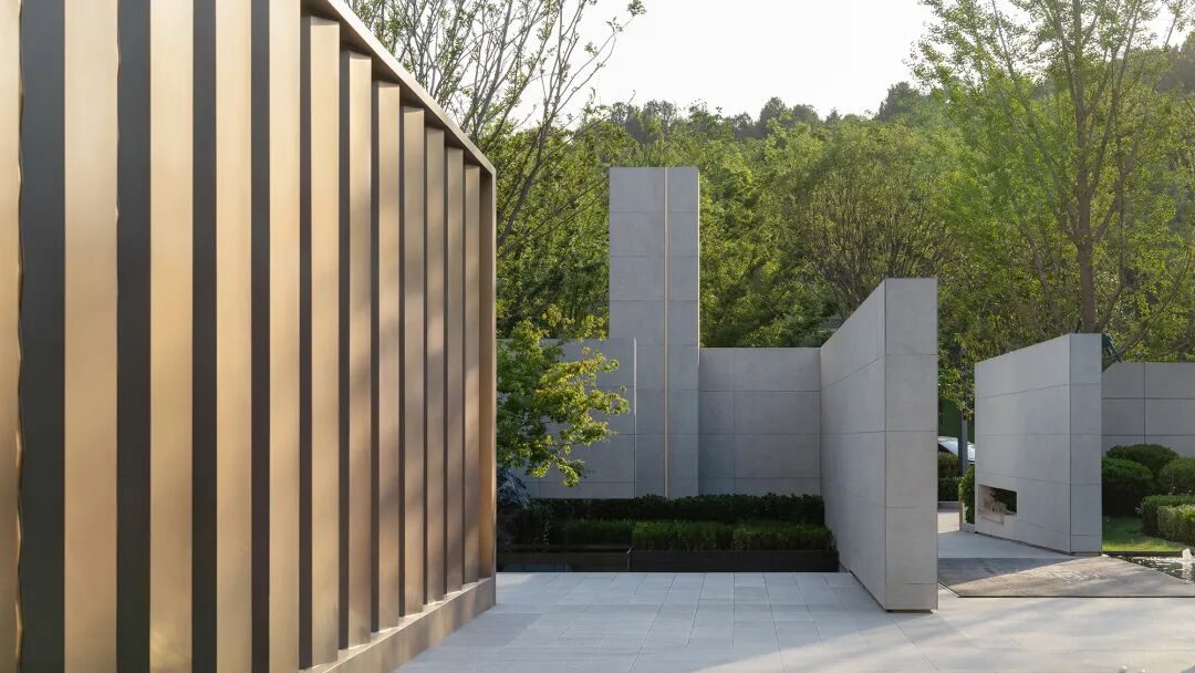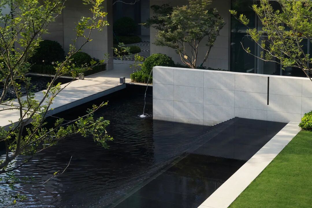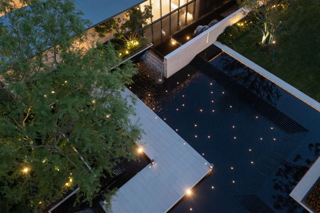 静谧的花园是一道屏障,空间与体块在此交织咬合,线条在空间中自由穿透,参差的绿篱与流动的水面,交织出自然与现代的和谐诗章。