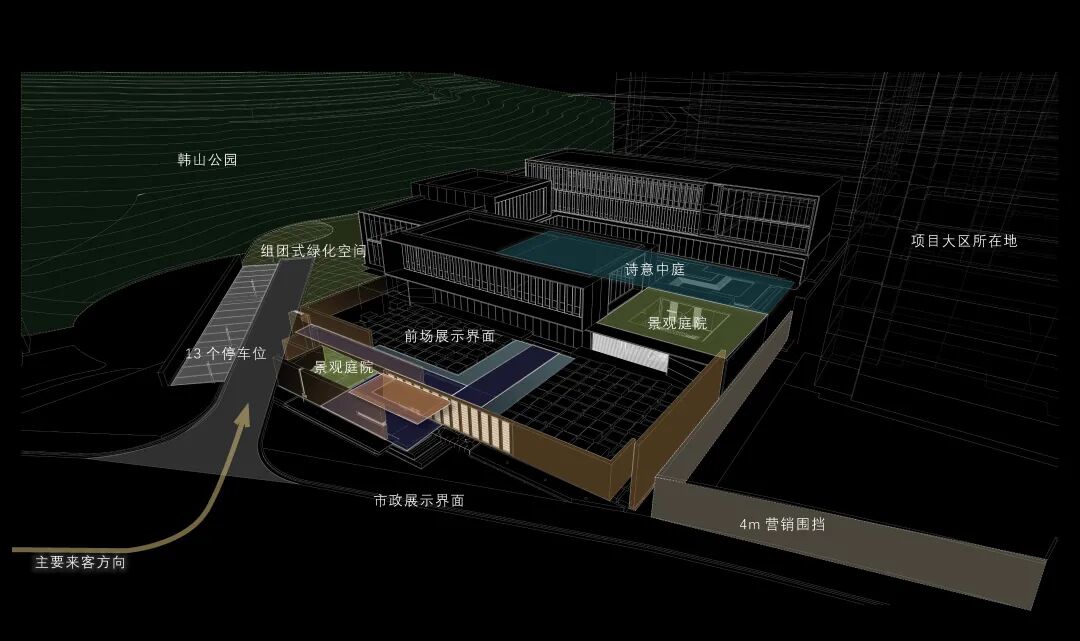 人文与自然的和谐顺理成为项目的主线,设计中我们用借景的方式将韩山景色融入画中,景观与山水相融共生,在与自然湖山的对望中,以诗歌的意象、节奏与韵律铺陈出一片诗意盎然的恬适生活。