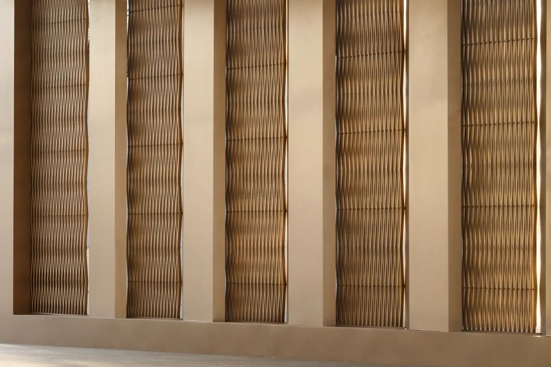 舒雅而惬意的生活,从这里开始。半掩半映的门廊,透过虚实相间的墙体,塑造光影跳动的迎客空间,展现出入口雅舍大气而又不失细节的空间美。