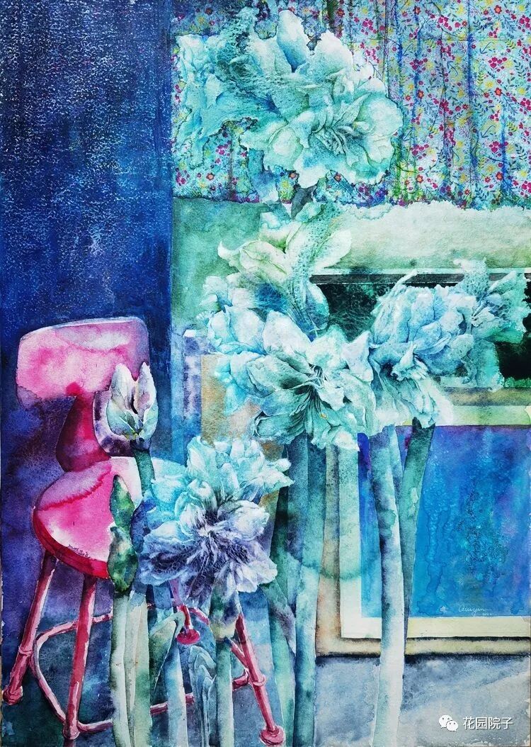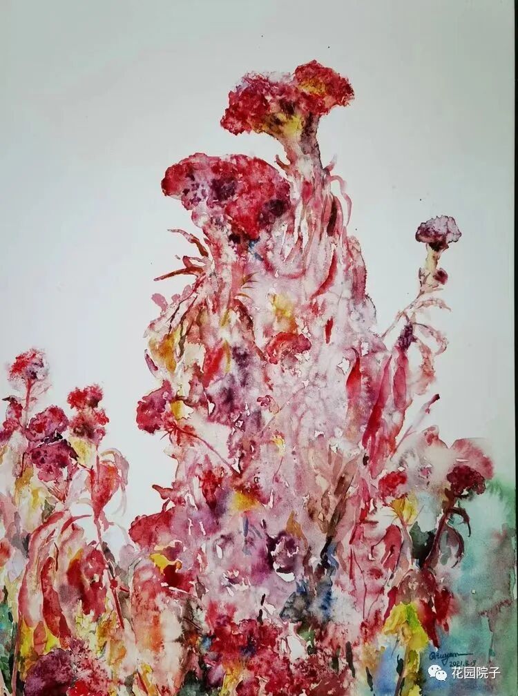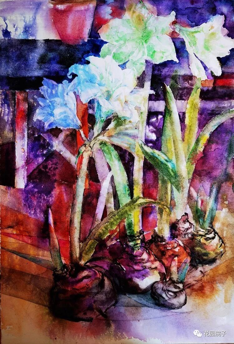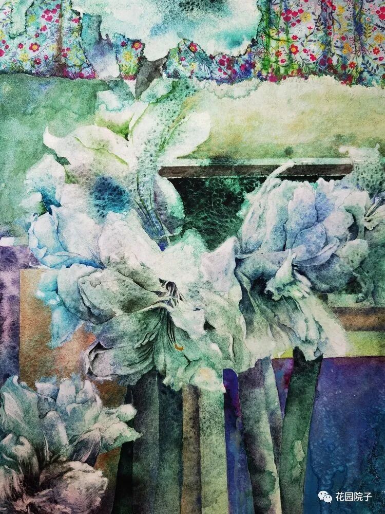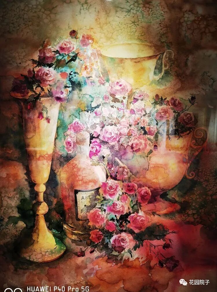 以下图片均出自我的花园各个时期,喜欢花就喜欢画她们,穿插近两年的大幅(尺寸皆为半开76CM×56CM)水彩作品。