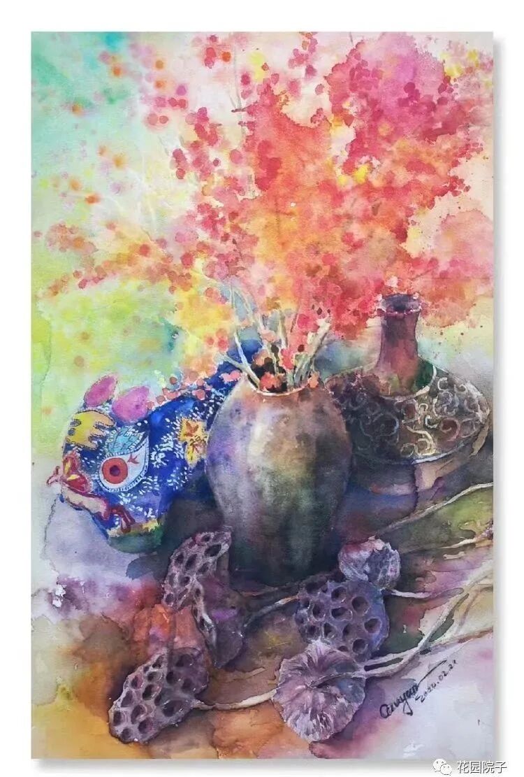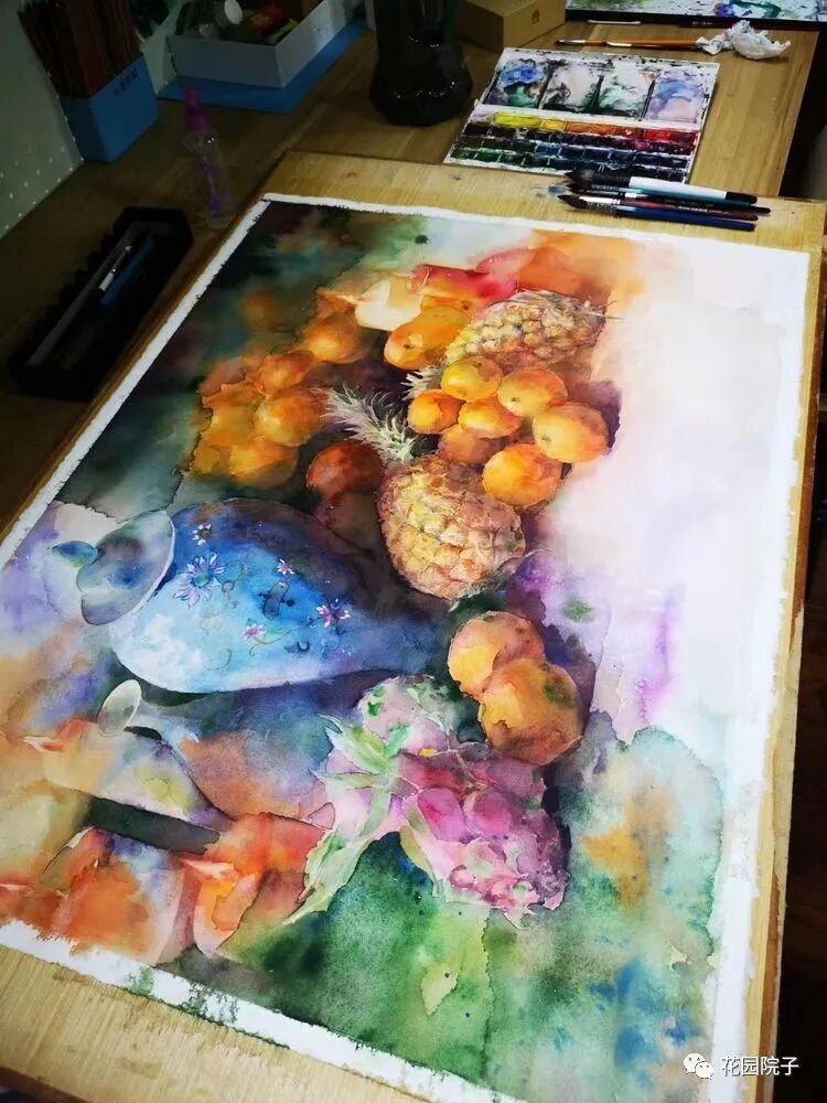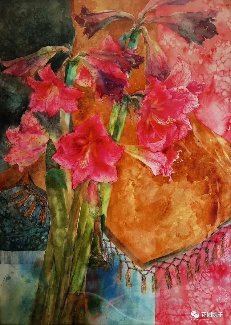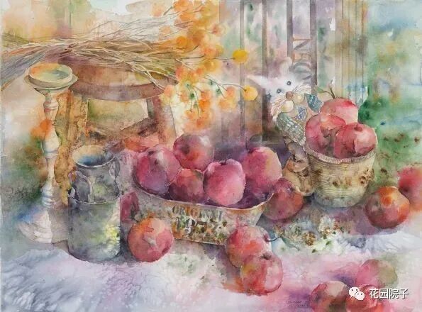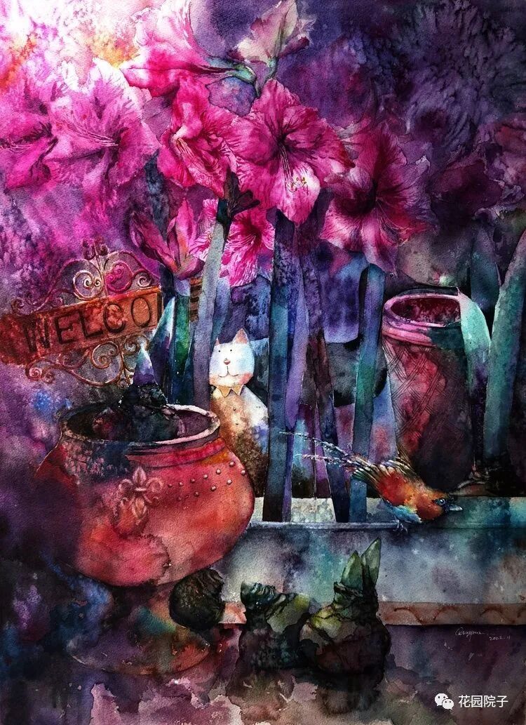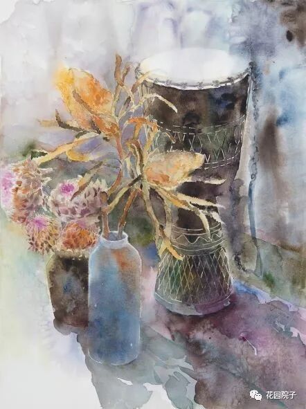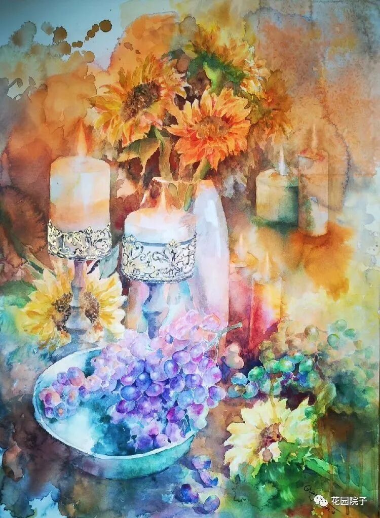 以下图片均出自我的花园各个时期,喜欢花就喜欢画她们,穿插近两年的大幅(尺寸皆为半开76CM×56CM)水彩作品。
