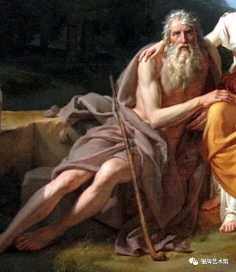而象征人类暮年的是左边那位须发皆白的老人,眼神茫然而空洞,却闪烁着智慧的余光。