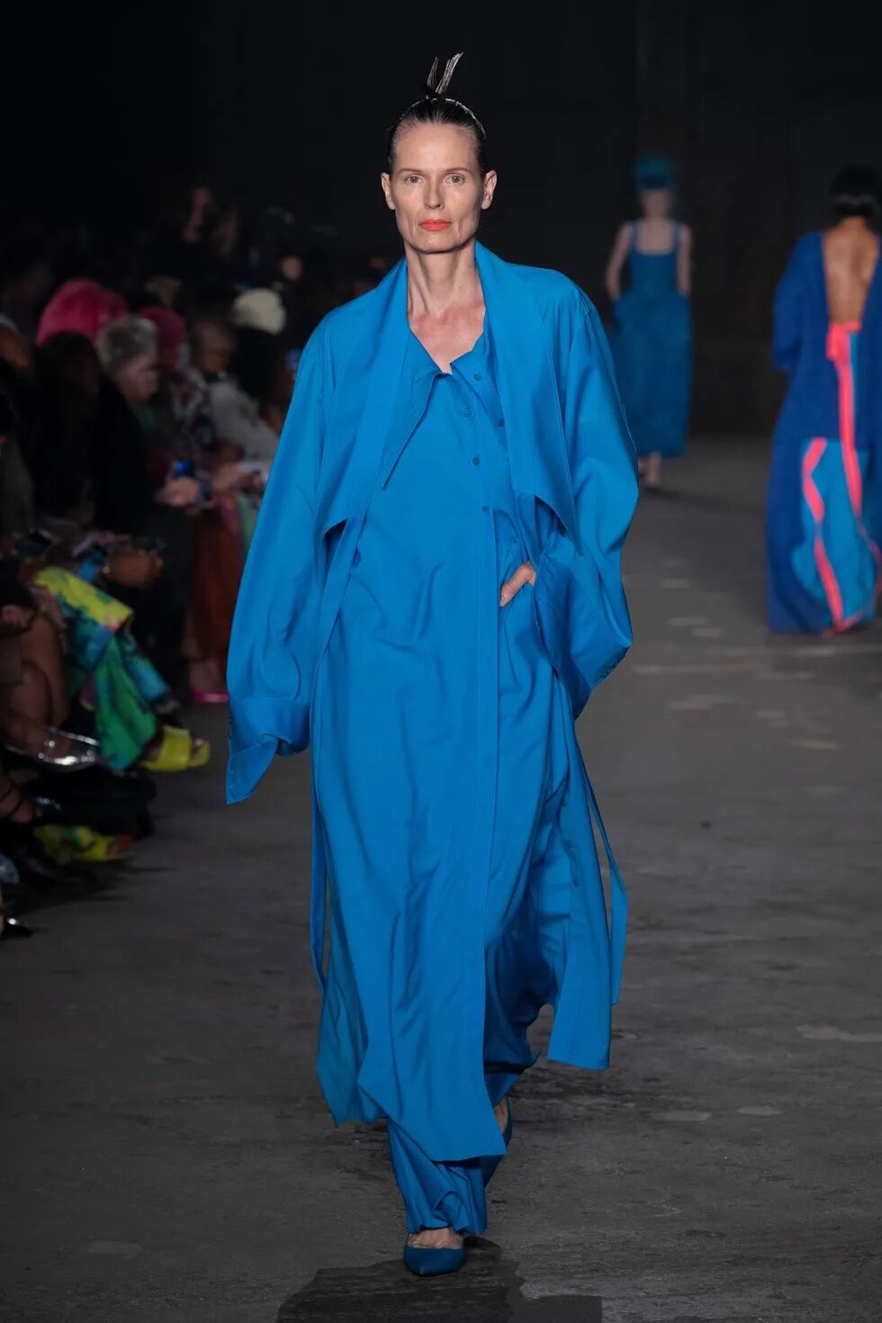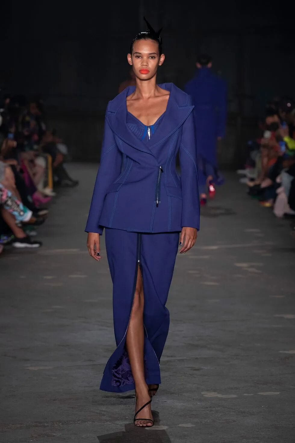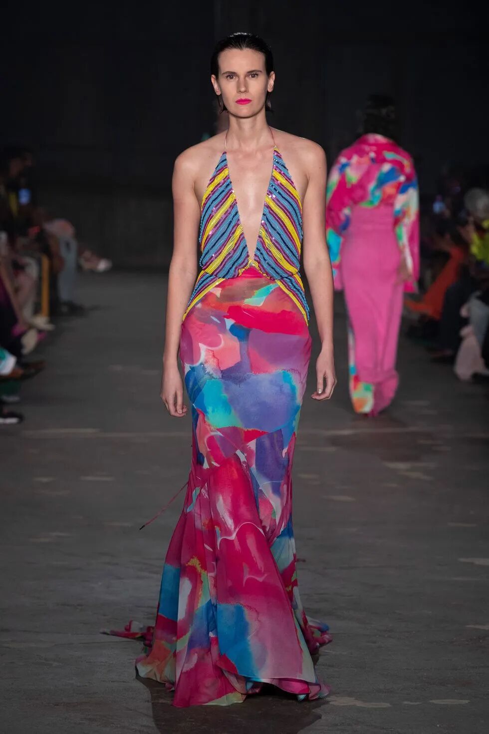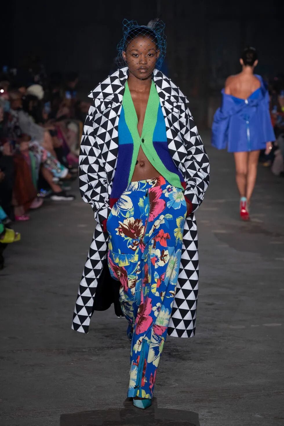 Christopher John Rogers 2023早春度假系列,通过视觉将快乐、多彩呈现在服装中,以表达人们对疫情后回归正常生活的欢欣雀跃。Karlie Kloss身穿紫蓝色大衣开场。整个系列将男性化服装与女性化服装混合,有大胆的花卉印花,也有艺术感十足的色彩和图形拼合,戏剧性十足。