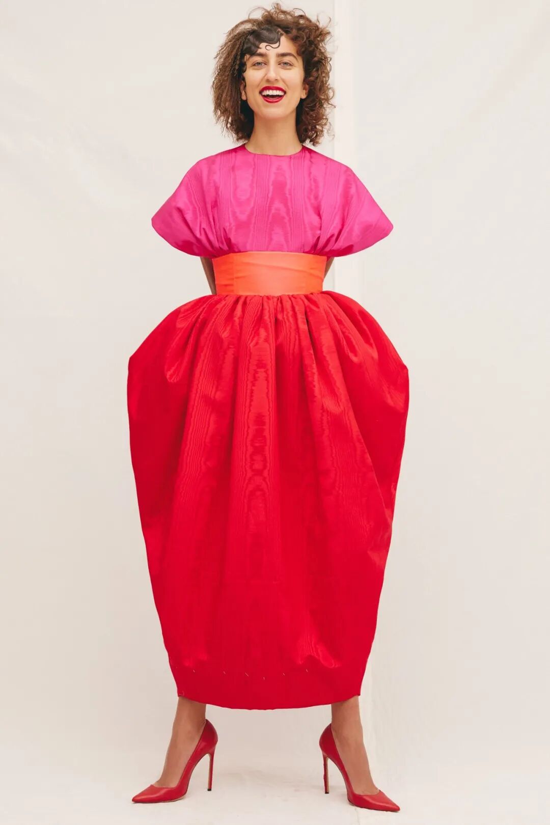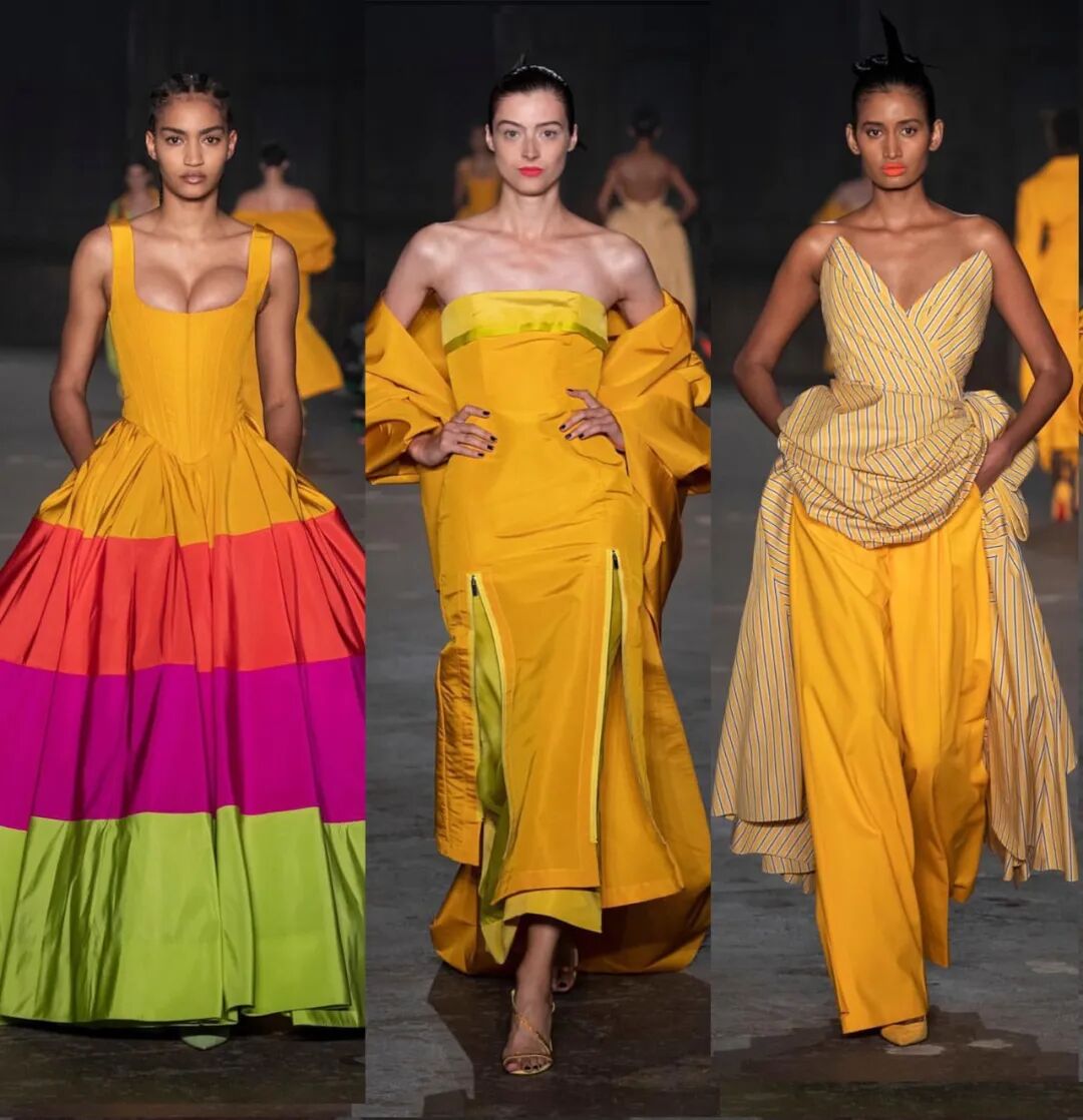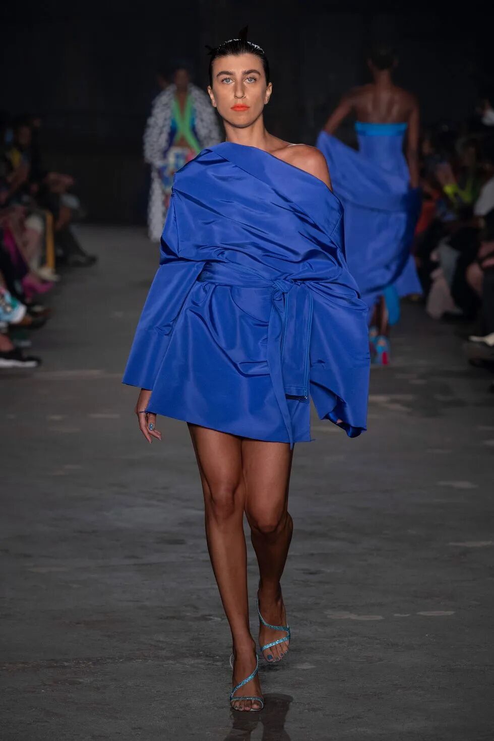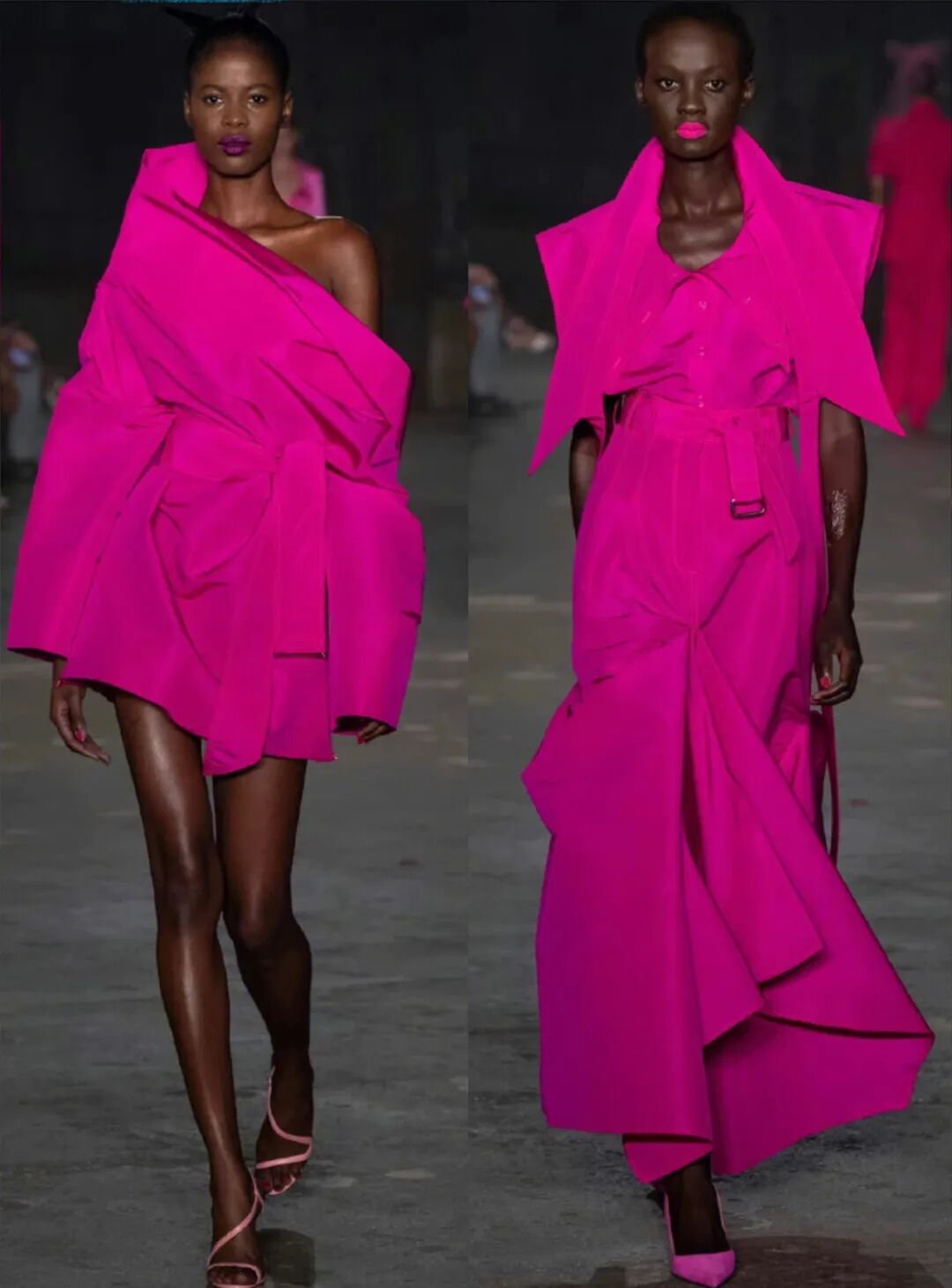 但是这位千禧一代不爱街头爱晚装,将其演绎出浮夸又闪耀的高级时装秀,除了极为抢眼的高饱和色彩之外,还有膨胀的球茎草莓型等超大廓形设计,以及能和高定媲美的服装剪裁工艺。