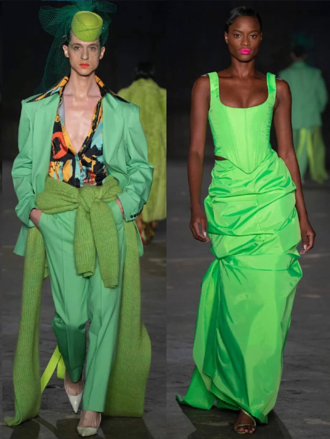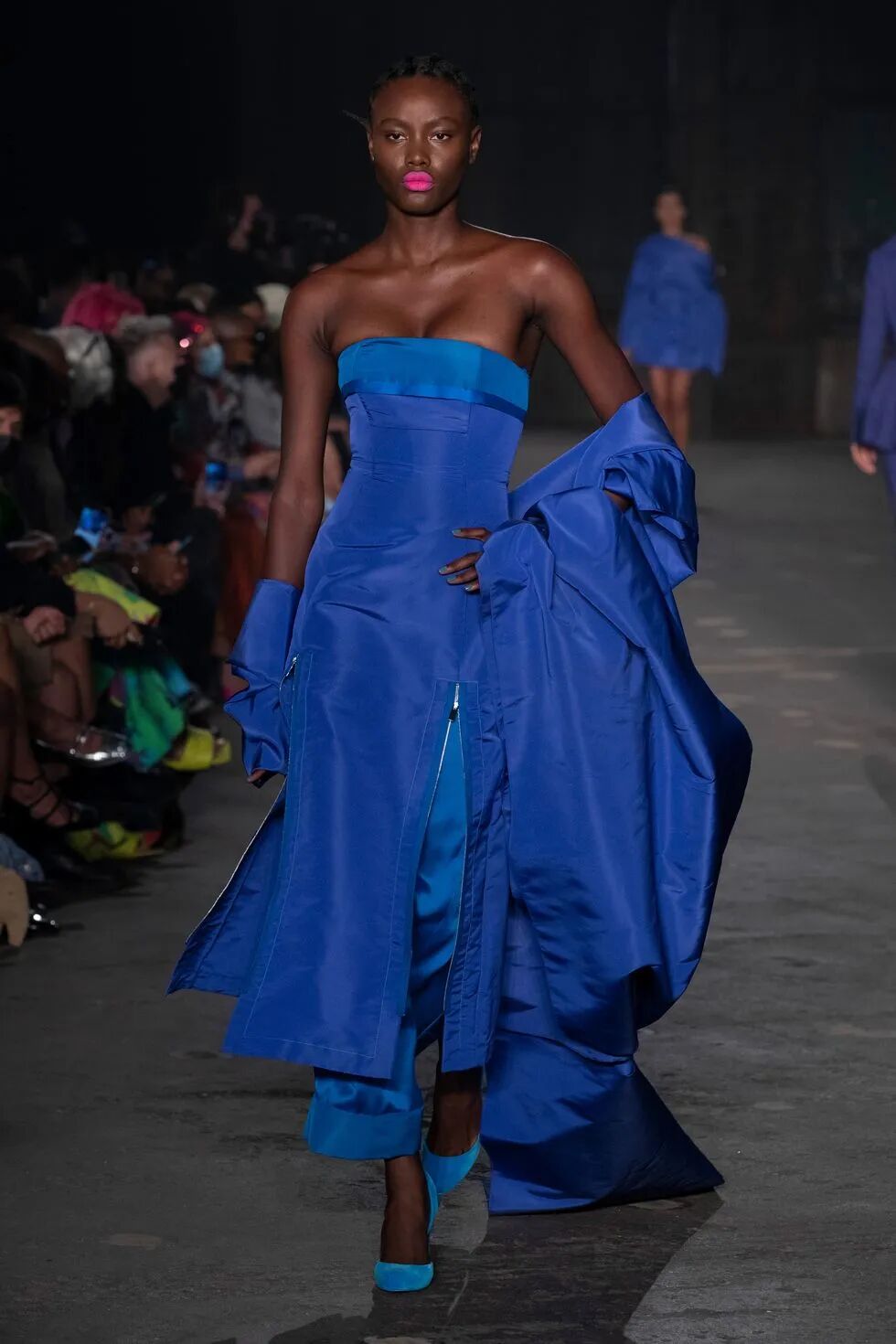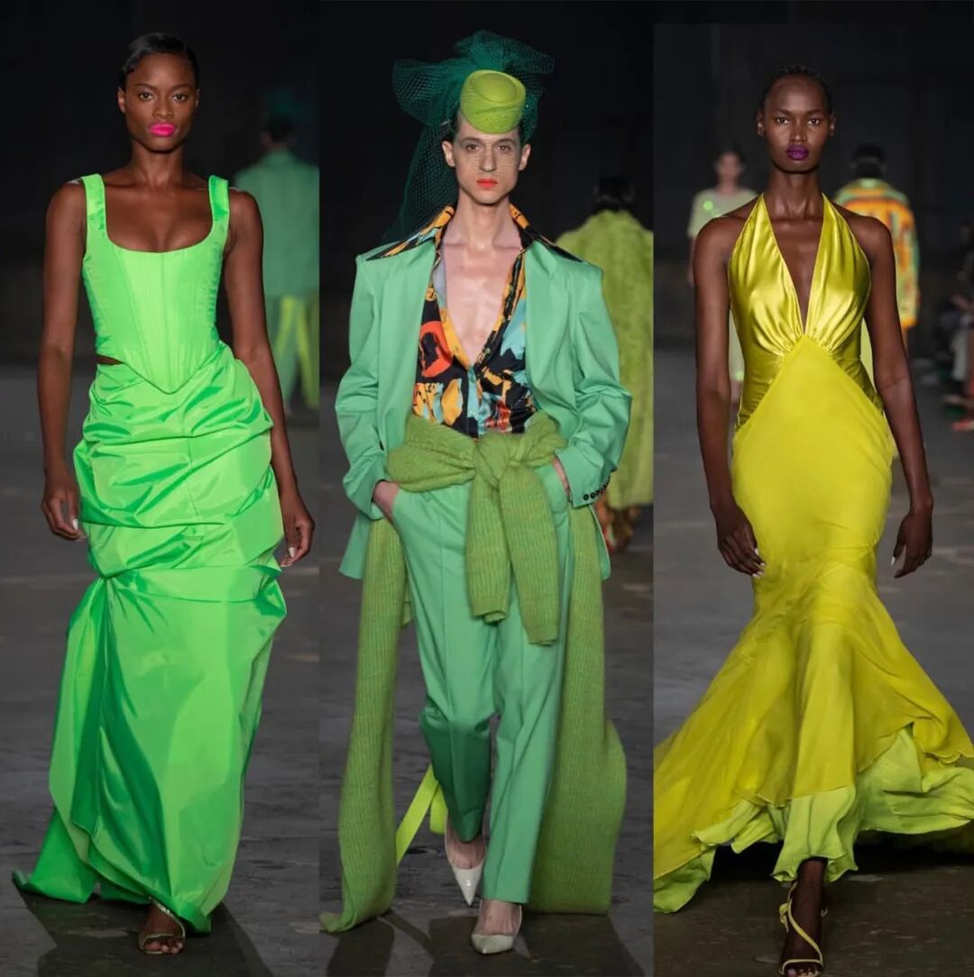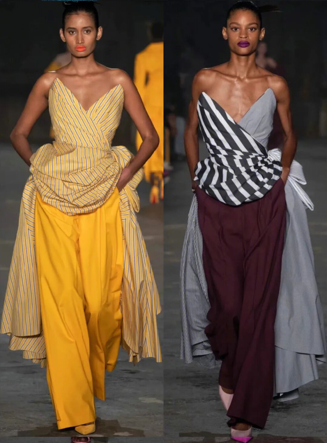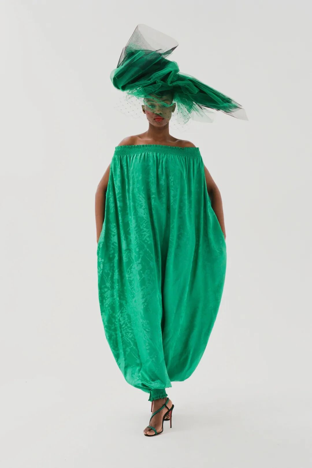 但是这位千禧一代不爱街头爱晚装,将其演绎出浮夸又闪耀的高级时装秀,除了极为抢眼的高饱和色彩之外,还有膨胀的球茎草莓型等超大廓形设计,以及能和高定媲美的服装剪裁工艺。