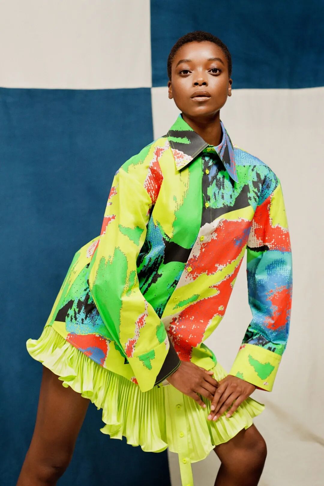 Rogers的设计向来专注于快乐的表达和简单的 剪裁。在21SS系列中,他更加关注舒适度,实用性,用大胆丰富的色彩搭配巧妙的装饰,呈现梦幻的光彩。