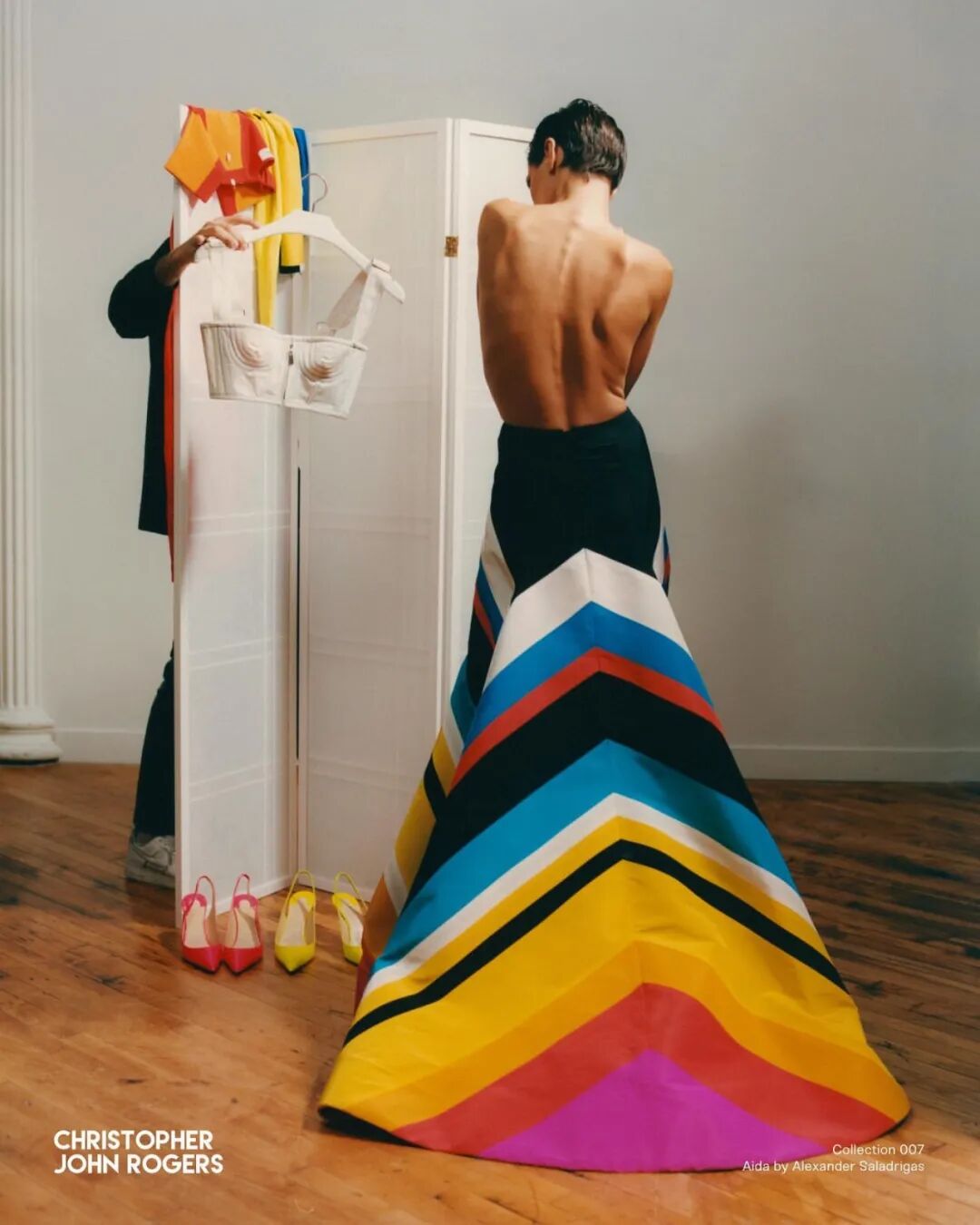 1994年Christopher John Rogers出生于美国路易斯安那州,妥妥的千禧一代,四年级开始沉迷于漫画,并开始思考服装究竟是什么、服装在漫画和戏剧里应该是什么样。从高中一年级开始,Rogers正式接触服装,他通过自学考上了萨凡纳艺术与设计学院,上学期间成立了品牌CJR。