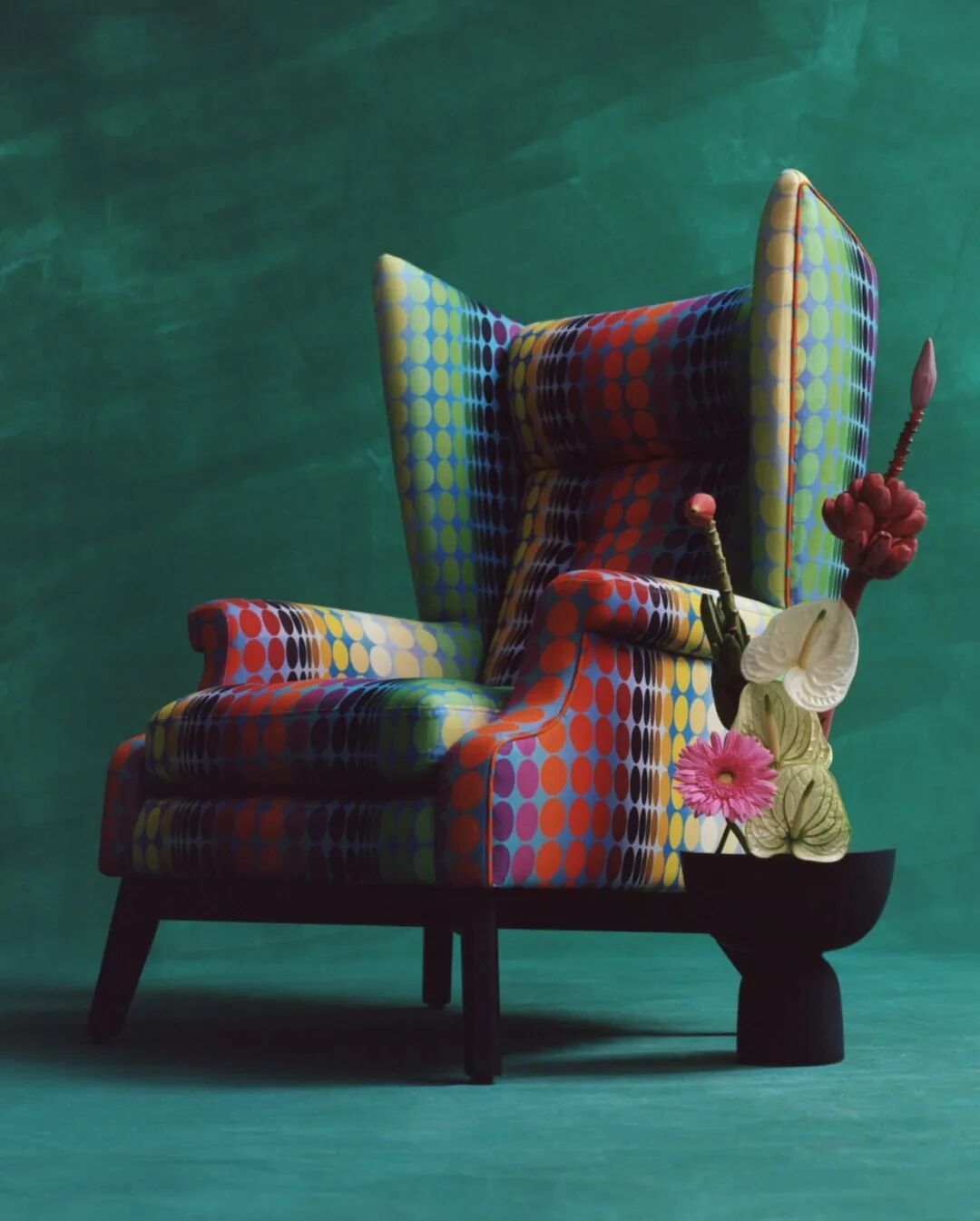 这是品牌CJR2016年创立以来推出的第一个家具系列,Rogers采用四把以适应性和多功能性着称的 Orior 最畅销的椅子,并在上面印上他的奇幻图案,包括彩色条纹、标志性渐变波点和坚固的橡木底座为 Orion 创始人 Brian McGuigan 的原创设计带来活力。兼顾狂野创意与实用功能性。