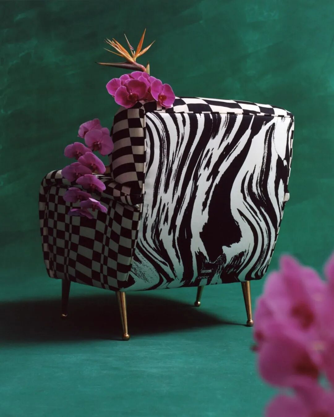在此合作中,最初搭配在晚礼服上的黑白图案二重奏为灵感来自1960年代斯堪的纳维亚风格的椅子带来了现代气息.值得一提的是,该系列的100% 收益将捐给 Color of Change 向 Rogers 推荐的基层非营利组织,该组织旨在加强和支持美国的黑人社区。