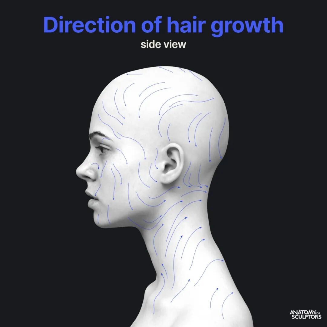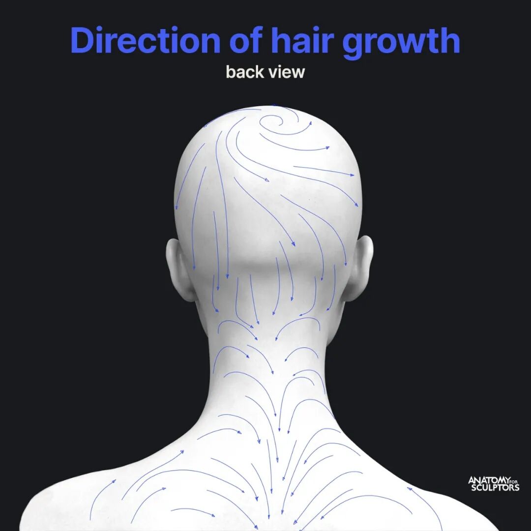最近更新了一个关于人头汗毛走向的图,看了以后可以更加清晰准确的刷汗毛啦~,不过这个走向需要根据不同的人有一些细微的调整,最好不要照搬照抄~