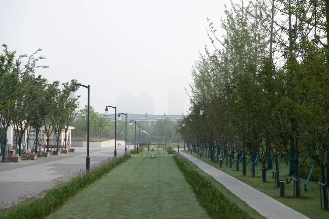 在榉树大道的绿意庇护下,各式社交与活动的开展更富趣味性。晨起锻炼、黄昏漫步,于林下阅读对弈、看孩童嬉戏躲藏,光影在大地上游移,人在林荫下休憩,用时光刻录生活的模样。