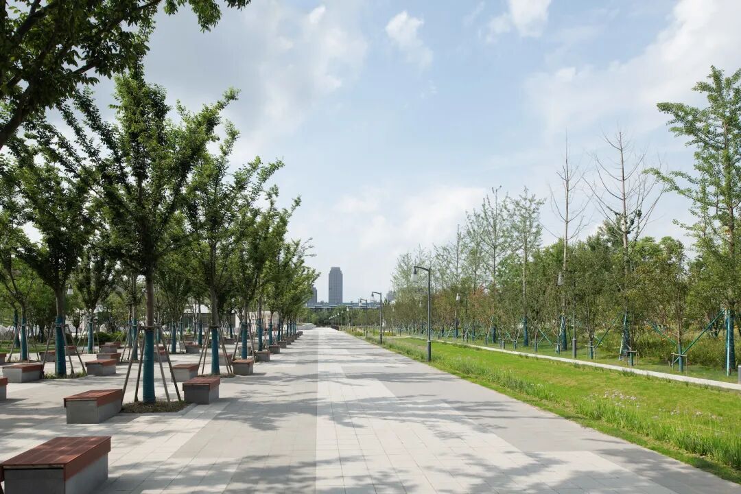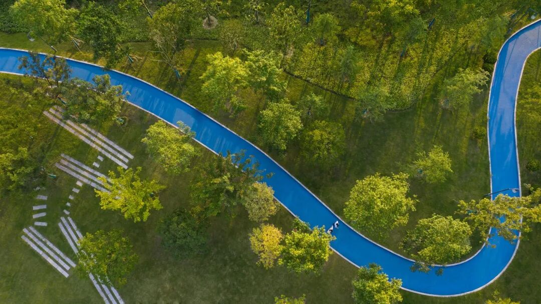 立足于便捷、自由与开放,南北贯通的园路与城市、周边社区建立起密切而包容的联结。沿街布局的开放式绿地、动感广场、健身步道等,加强与城市的界面渗透,阻隔喧嚣,鼓励公众进入,让公园形成生活与文化记忆的载体。