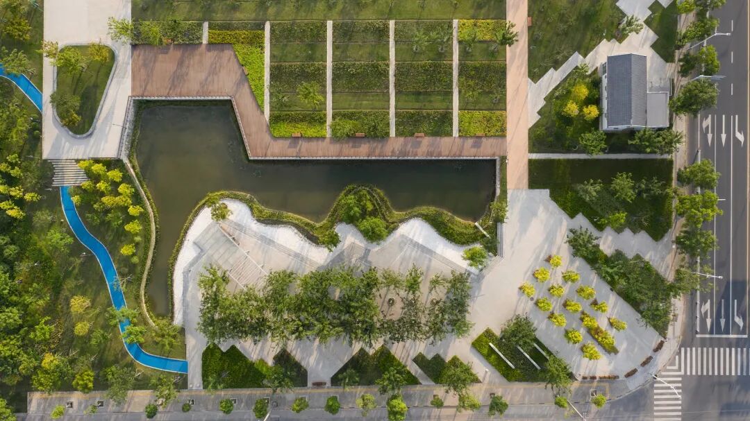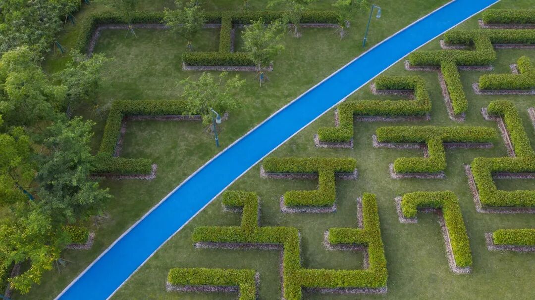 沿着生态驳岸的景观湖看跃动波光,在倍感亲切的雨洪花园里赏自然四季。穿梭益趣植物迷宫,伴随健身跑道环绕园中,看一派生机焕发,游人如织,迭变的公园容纳着人们的生活新中心。
