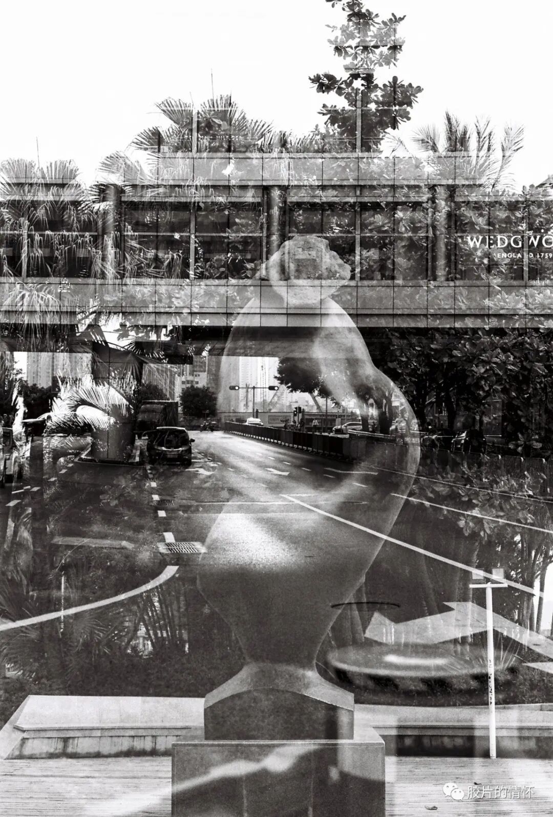 以前用数码玩过多重曝光,但用135胶片相机拍多重曝光还是第一次,有点小确幸。画面的第二重曝光的画面会在第一重未曝光和曝光较弱的区域,需要用眼睛和脑子把两张构图的画面预先叠加在一起,预览一下位置是否得当。得到这张画面,起码也算没有翻车,所以才有点小确幸。