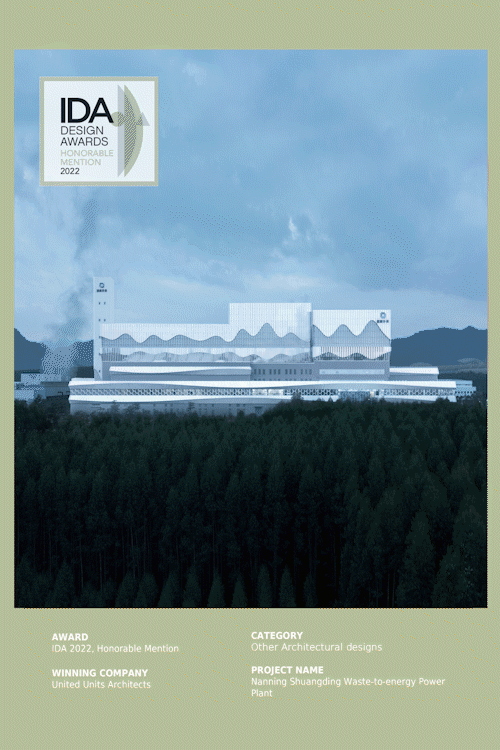 来自UUA建筑师事务所的南宁双定垃圾焚烧发电厂项目自2022年11月中旬发布以来,短短2个月的收获了来自社会各界的高度关注和探讨。近日,南宁双定垃圾焚烧发电厂项目又接连收获了2个国际大奖中的3个不同类别的奖项。分别是: