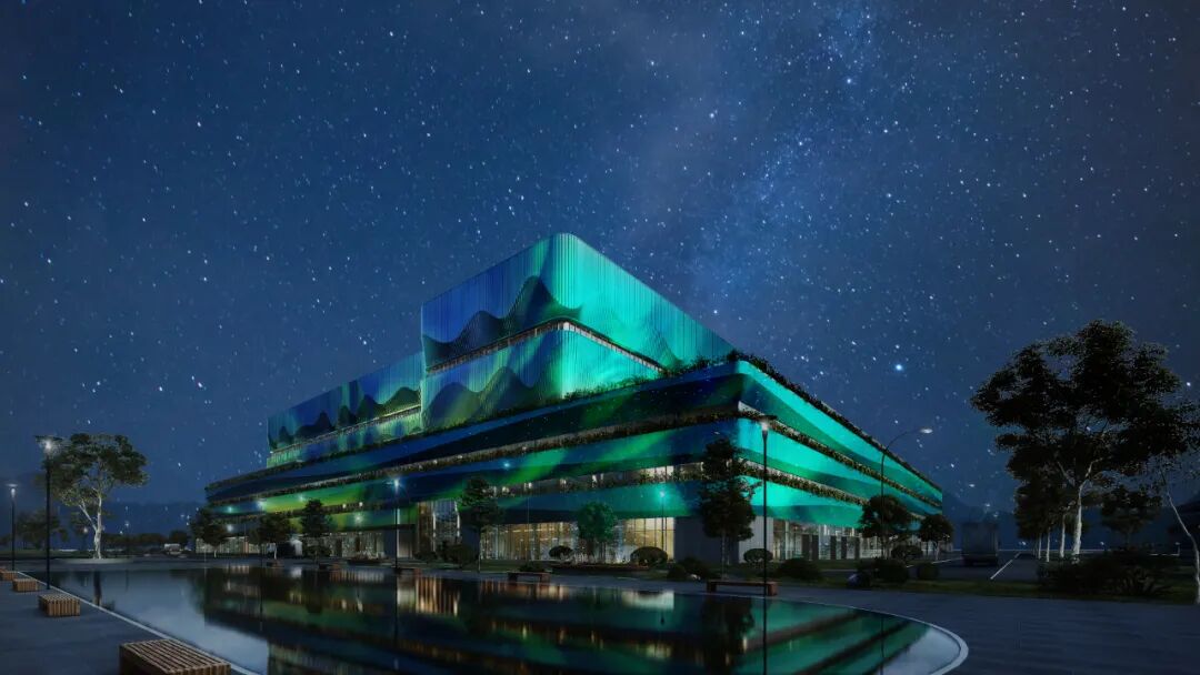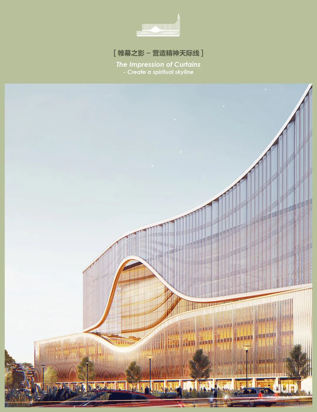 在不同的光影下,建筑将呈现出完全不同的风采,白天,阳光投射在白色波浪幕墙形成的幕布上,顺着波浪起伏的建筑流淌,仿佛壮丽的光之瀑布;夜晚,通过将多媒体内容呈现在幕墙上,又令建筑呈现不同的姿态,充分地发挥本项目的展示与教育功能,给公众以最深刻的印象。