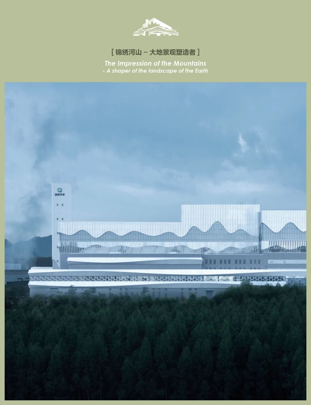 方案力图向公众展示一个全新的废物利用的能源模式,创造一座环境友好型的绿色能源中心。厂房立面的式样来自于中国传统的砖砌和竹编。砖块采用混凝土预制构件,配置有绿色植物和滴灌系统。