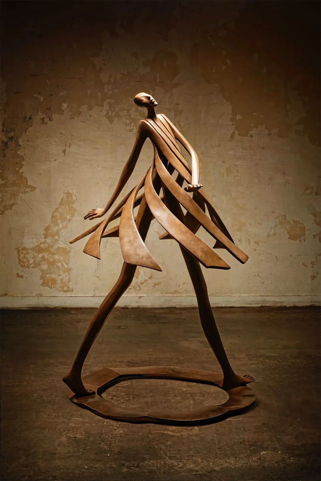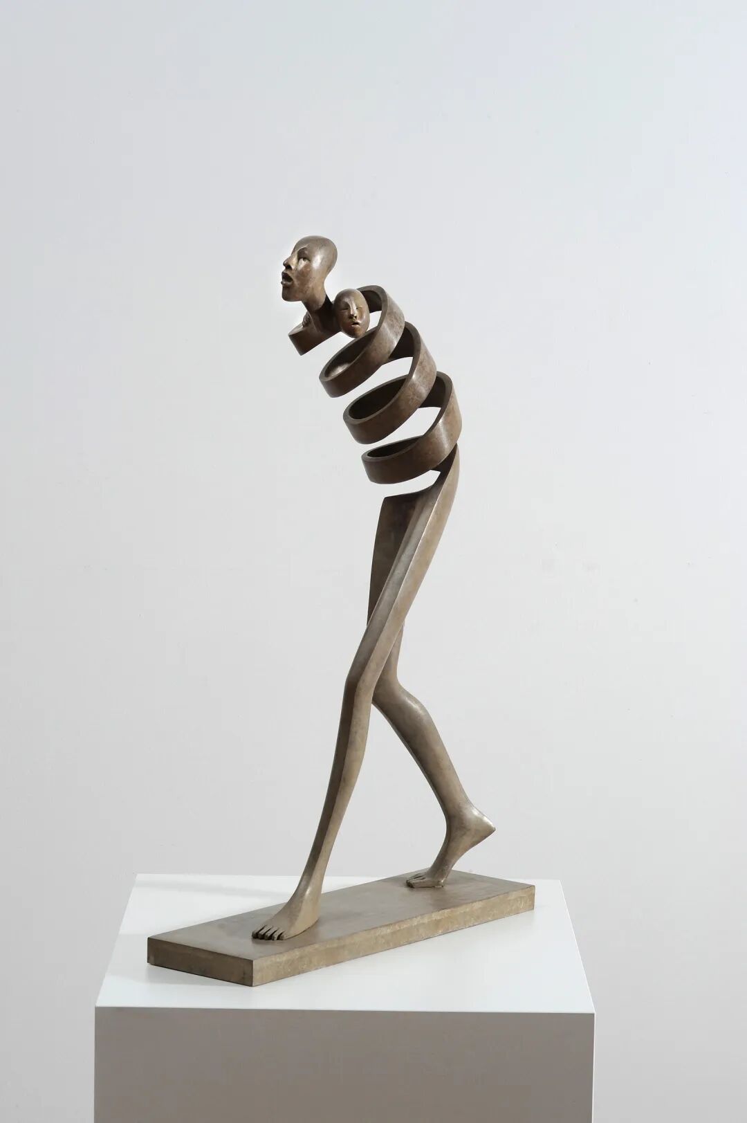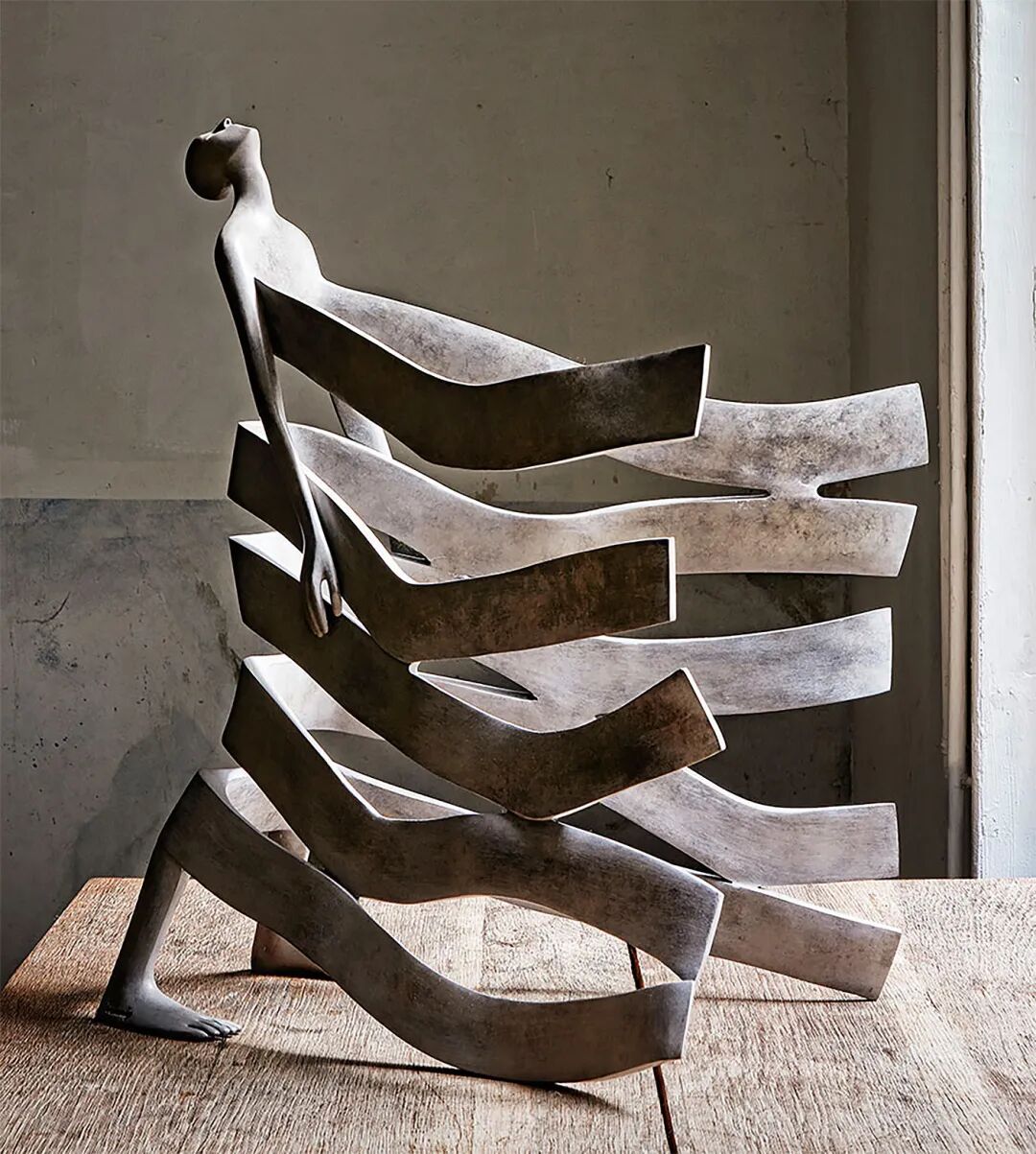 她创作的抽象和超现实主义的雕塑,忽略了透视关系和人体比例的存在,动作看起来很夸张,身体也非常细长,她将整个人物分割成条状、螺旋状和扭曲的形式,让身体的流动性与面无表情的脸,形成了鲜明的对比。