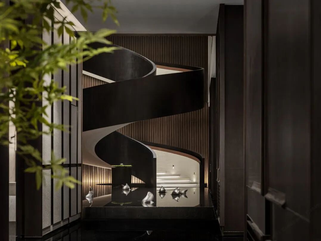 采悦轩旁的旋转楼梯,非常适合打卡拍照,尤其是夜晚时分,非常美,相信也会成为网红打卡出圈地。