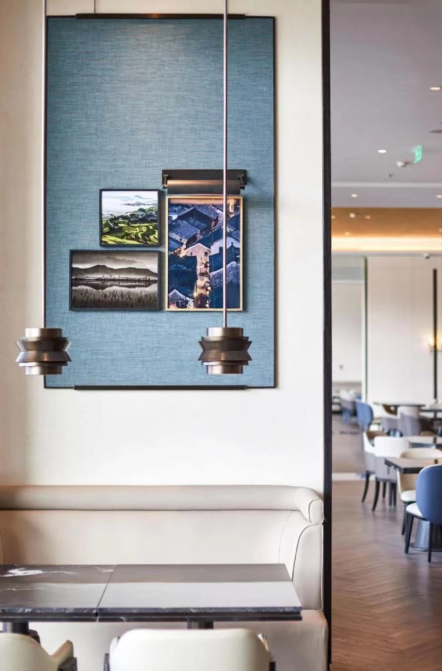 酒店餐厅的装饰画浅看以为是摄影照片,却没想到是抽象绘画,画主要是以宁海当地文化地点和生活场景为主,传递给人一种人文意境的美好,足见酒店的用心和巧妙。