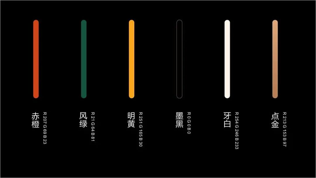 以热烈的赤橙、儒雅的风绿、明黄为主色调