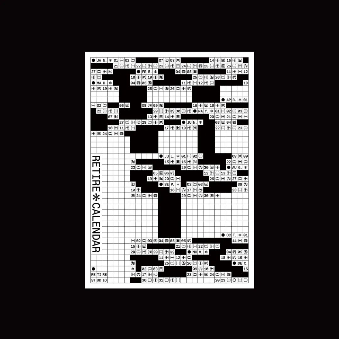 Retire Calendar(退休日历)是我们对“从来如此”的反思与挑衅。当我们习惯了便于阅读,那便做的难以阅读。习惯了把日历摆放在桌面,那就放大到桌子放不下。习惯了使用Illustrator来做设计,那不妨换个软件,用Excel试试。习惯了工作日居多,就让工作日消失,眼里只留下假期……没有什么从来如此,从来就不该如此。