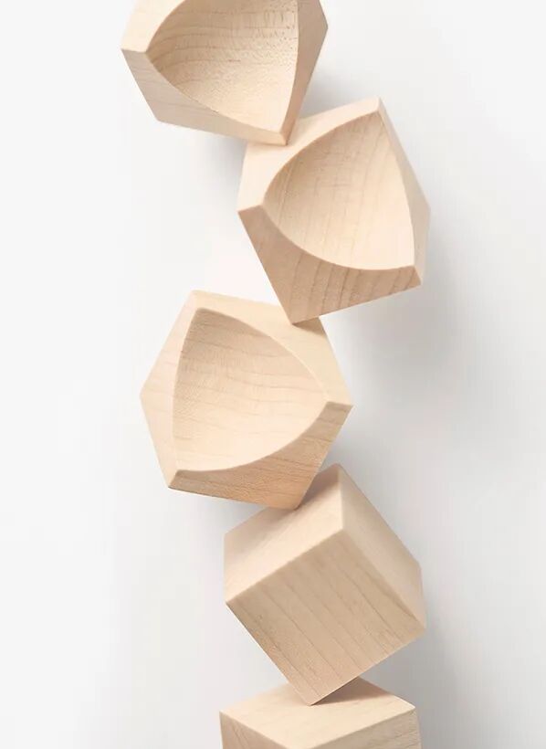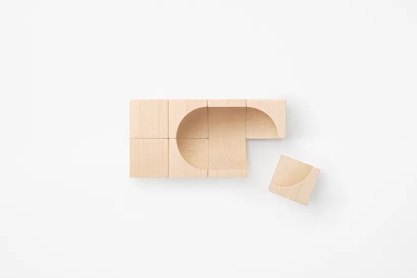 在堆积的过程中,不仅像普通的积木一样,外侧的轮廓会发生变化,慢慢地,内侧也会产生空洞状的轮廓。此外,不仅是往上堆砌,还可以水平排列或立体排列,使凹陷处也像一个洞窟一样连接起来。这是一种越是堆积,“留白”就越多的设计。