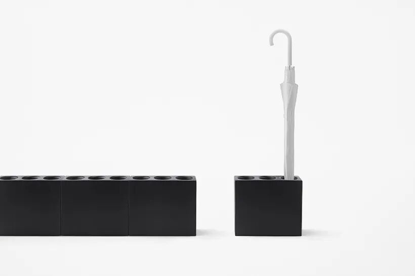 这也是nendo工作室为美国运通公司所设计的可以在店铺和办公室使用的纤细紧凑的伞架。