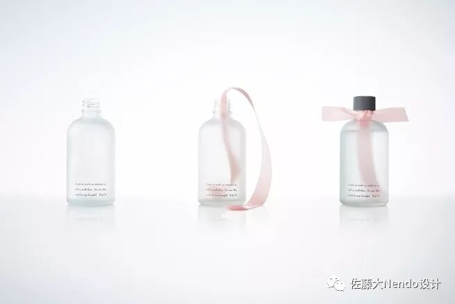 一种房间香水,装在一个瓶子里,脖子上系着一条丝带。色带不仅可以识别内部的香味,还可以作为其漫射器。一种利用色带吸收性质的设计。有12种不同的香水,均为100ml。