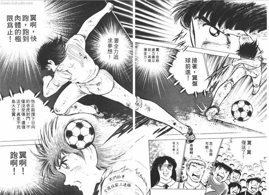 大空翼在连续的攻防中,已经伤痕累累,然而面对日向小次郎强悍的攻势,他仍旧凭借顽强的意志站立在球场上。