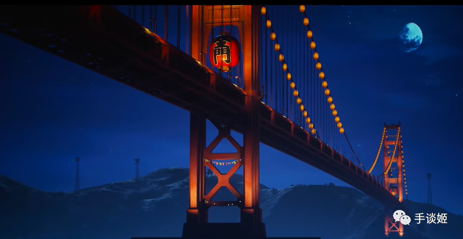 而旧金山著名的金门大桥上,则挂着巨型的日式大灯笼。随处可见的神像、鸟居,都让人产生错位感:这他么到底是日本还是美国?