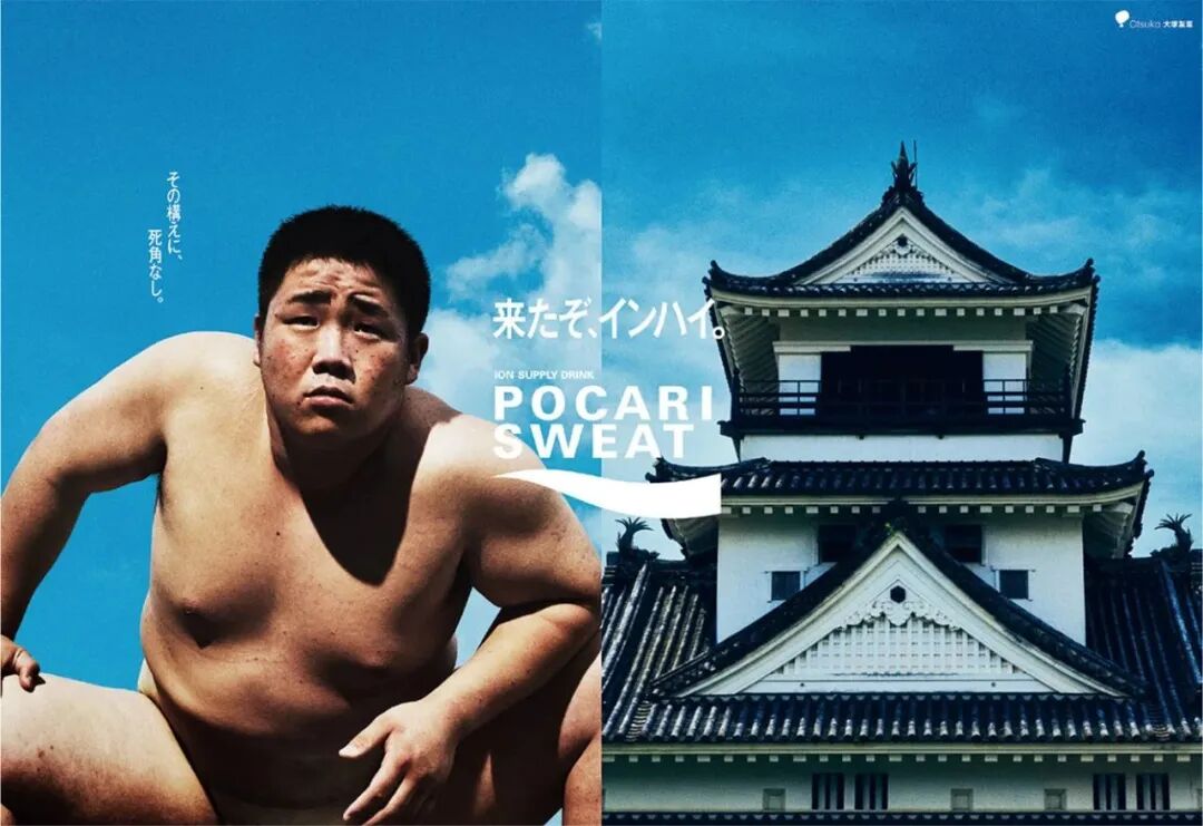 「相扑」选手成预备姿势的样子,就如同高知城般稳固且坚定不移;