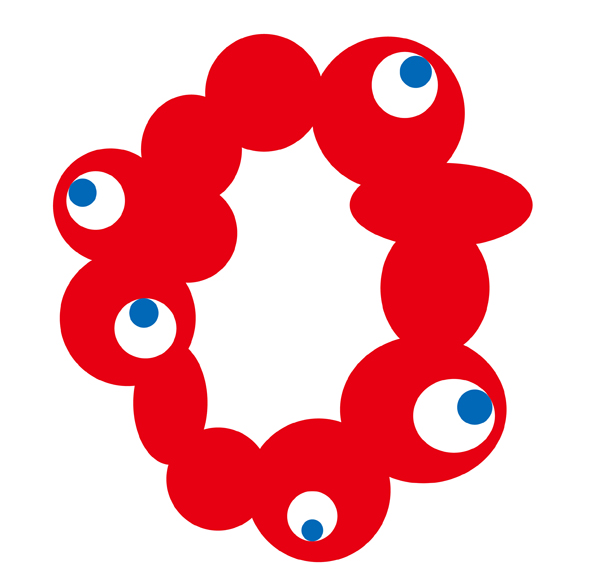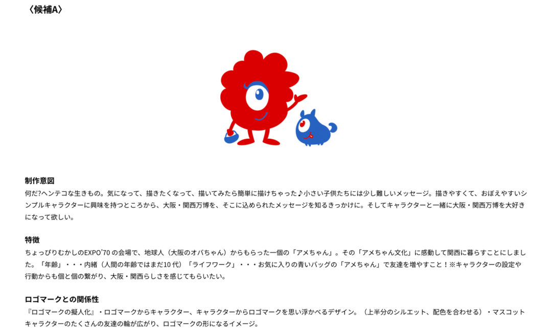 第二个候选形象则是一个基于地球形象的延伸。头顶的各种圆形细胞代表不同的价值观,嘴巴的圆形是字母O,是大阪这个地区的首字母。